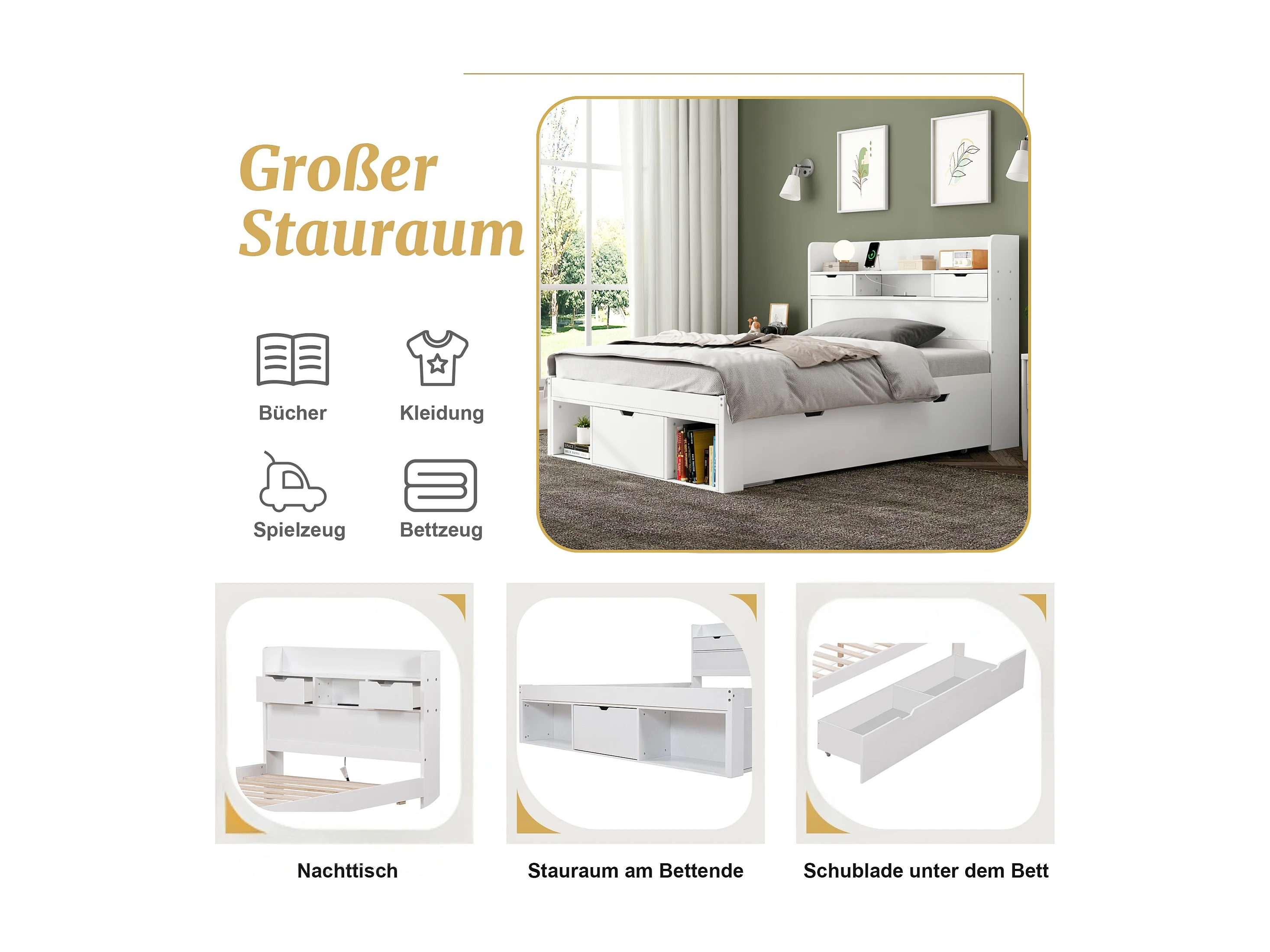 Lit coffre simple pour enfant - 90 x 200 cm - avec USB + tiroirs + armoire de rangement - bois - blanc