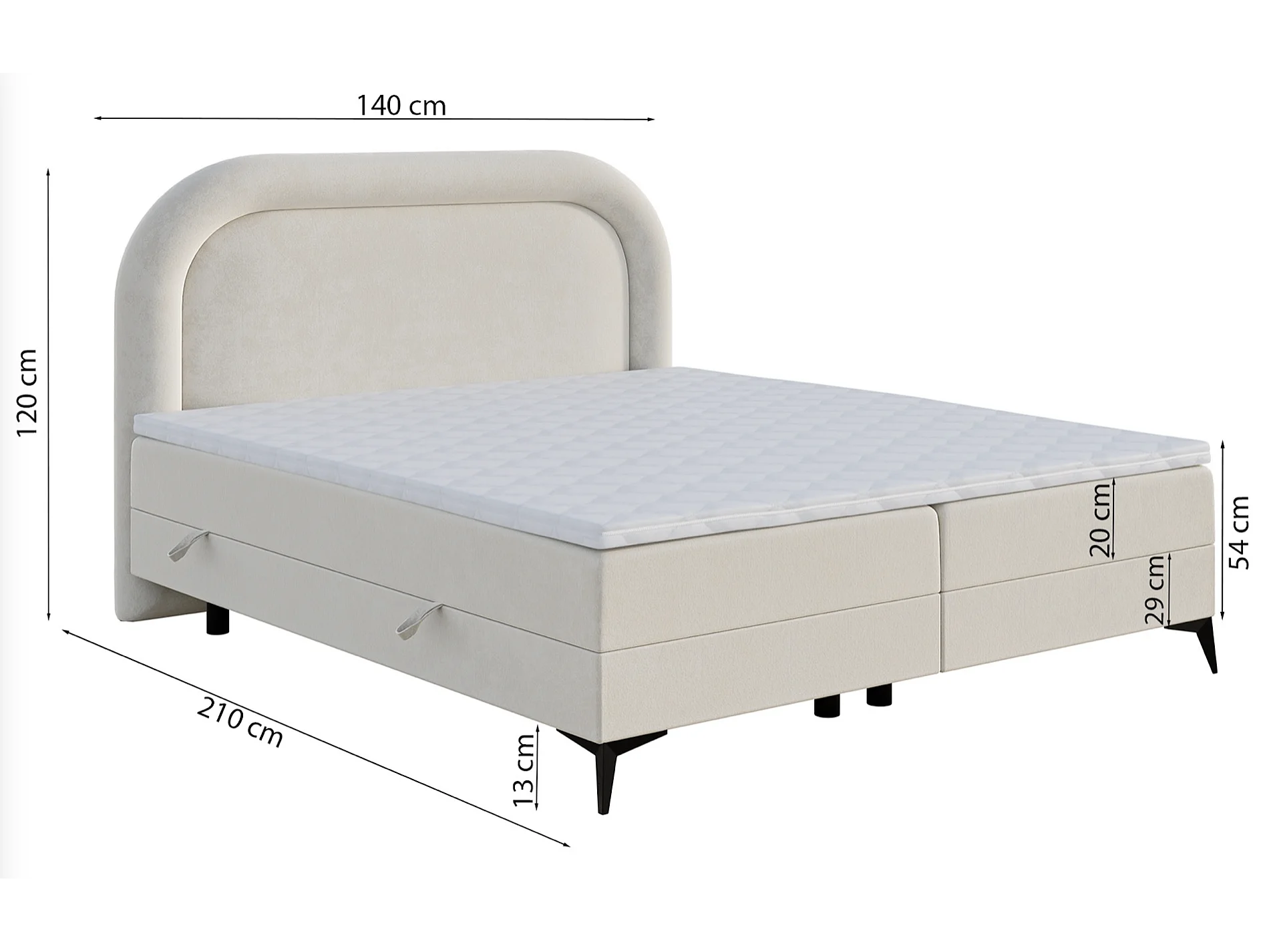 Lit continental - 140x200 cm - en velours beige clair - LOREO