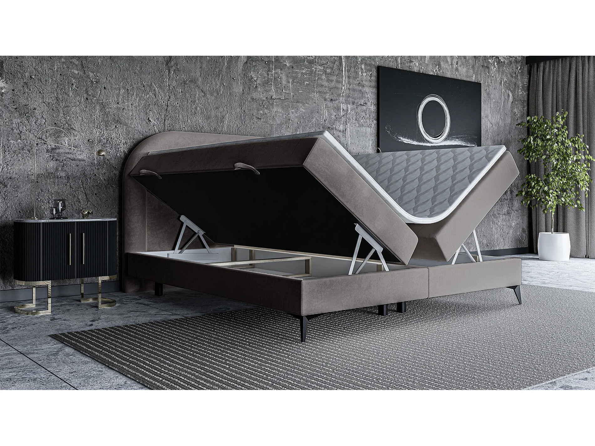 Lit continental - 140x200 cm - en velours grège - LOREO