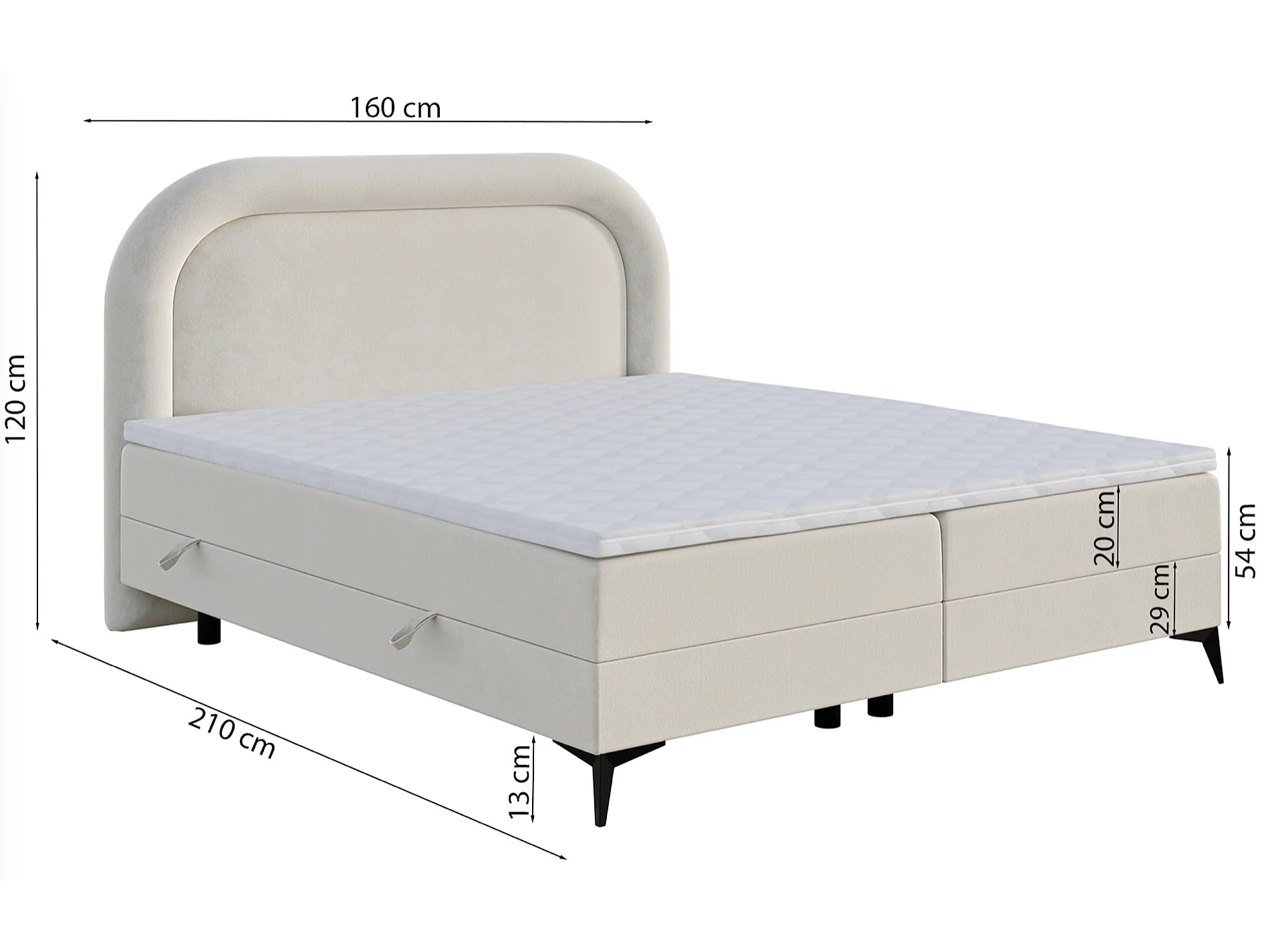 Lit continental - 160x200 cm - en velours grège - LOREO