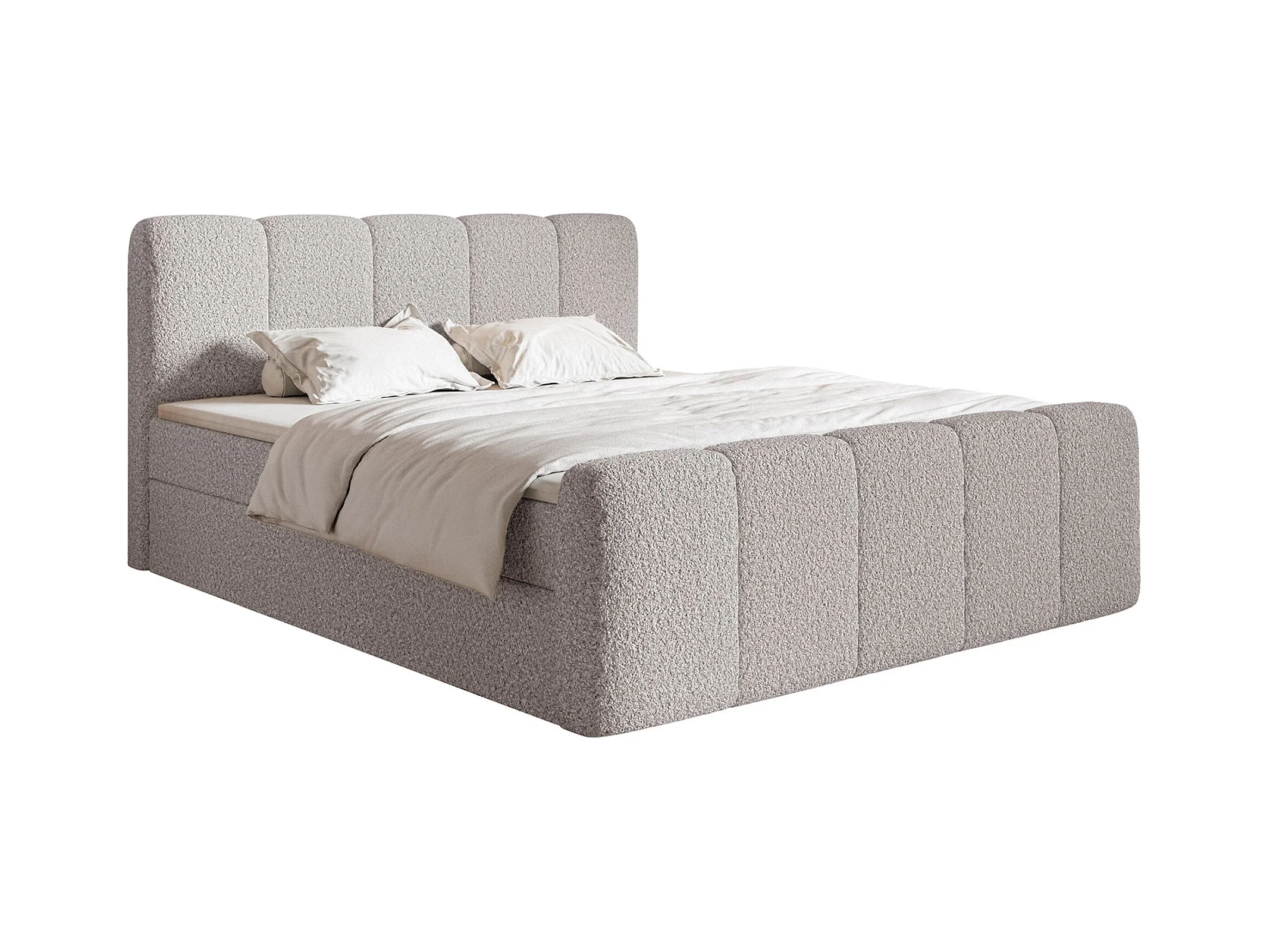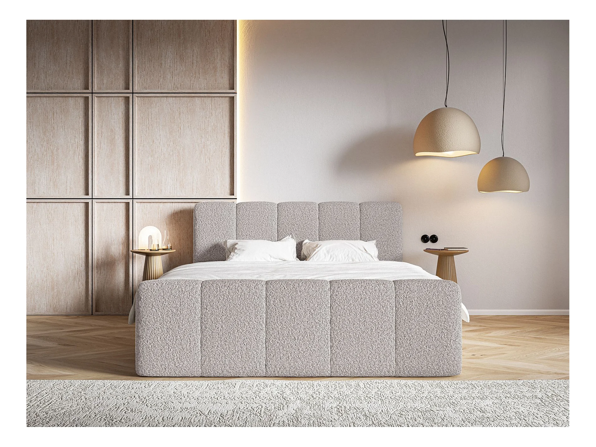 Lit continental - 200x200 cm - en tissu bouclé taupe - CLOUDY II