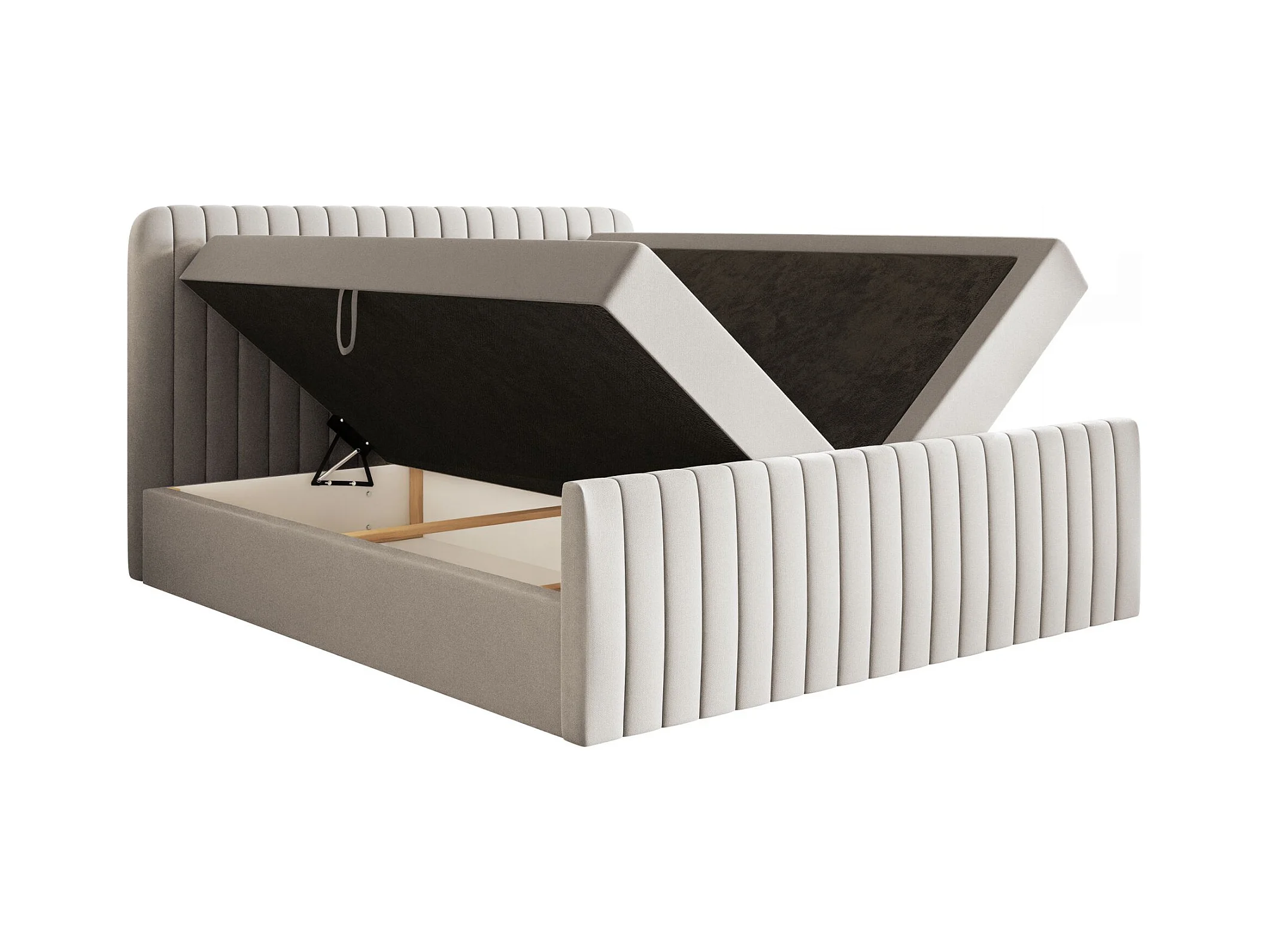 Lit boxspring 140x200 – rangement et surmatelas – chenille hydrophobe – beige clair – TOGENTS