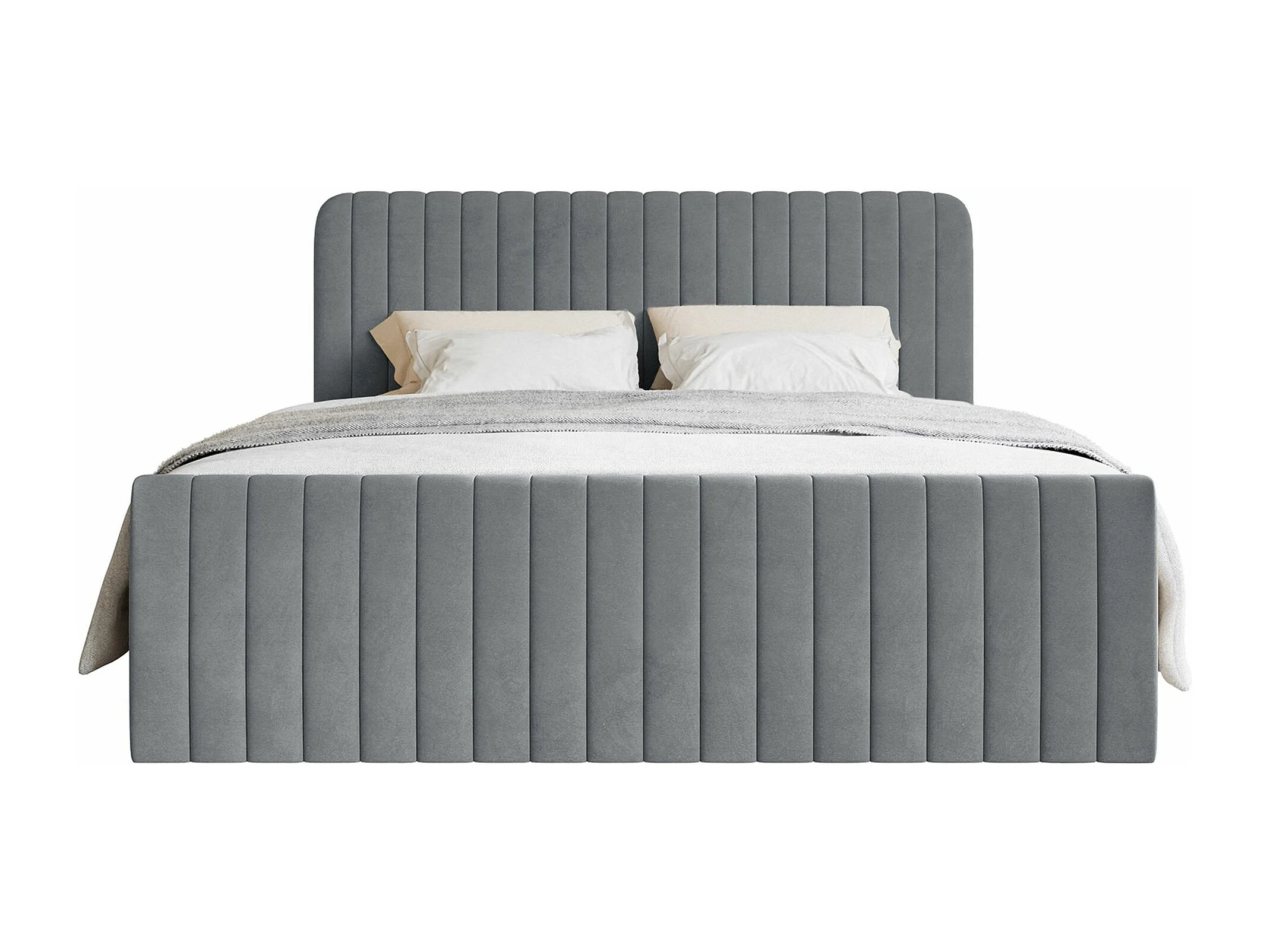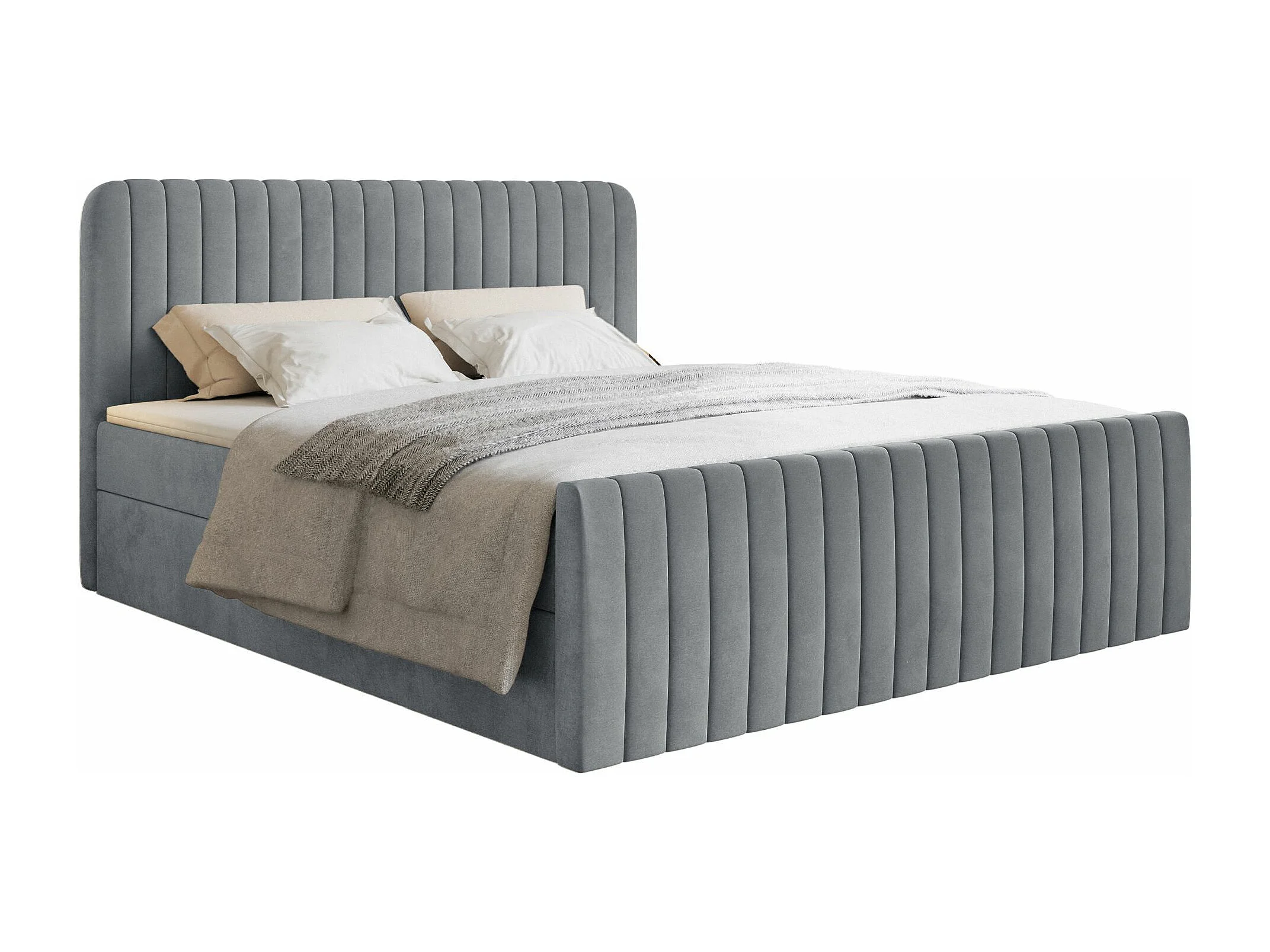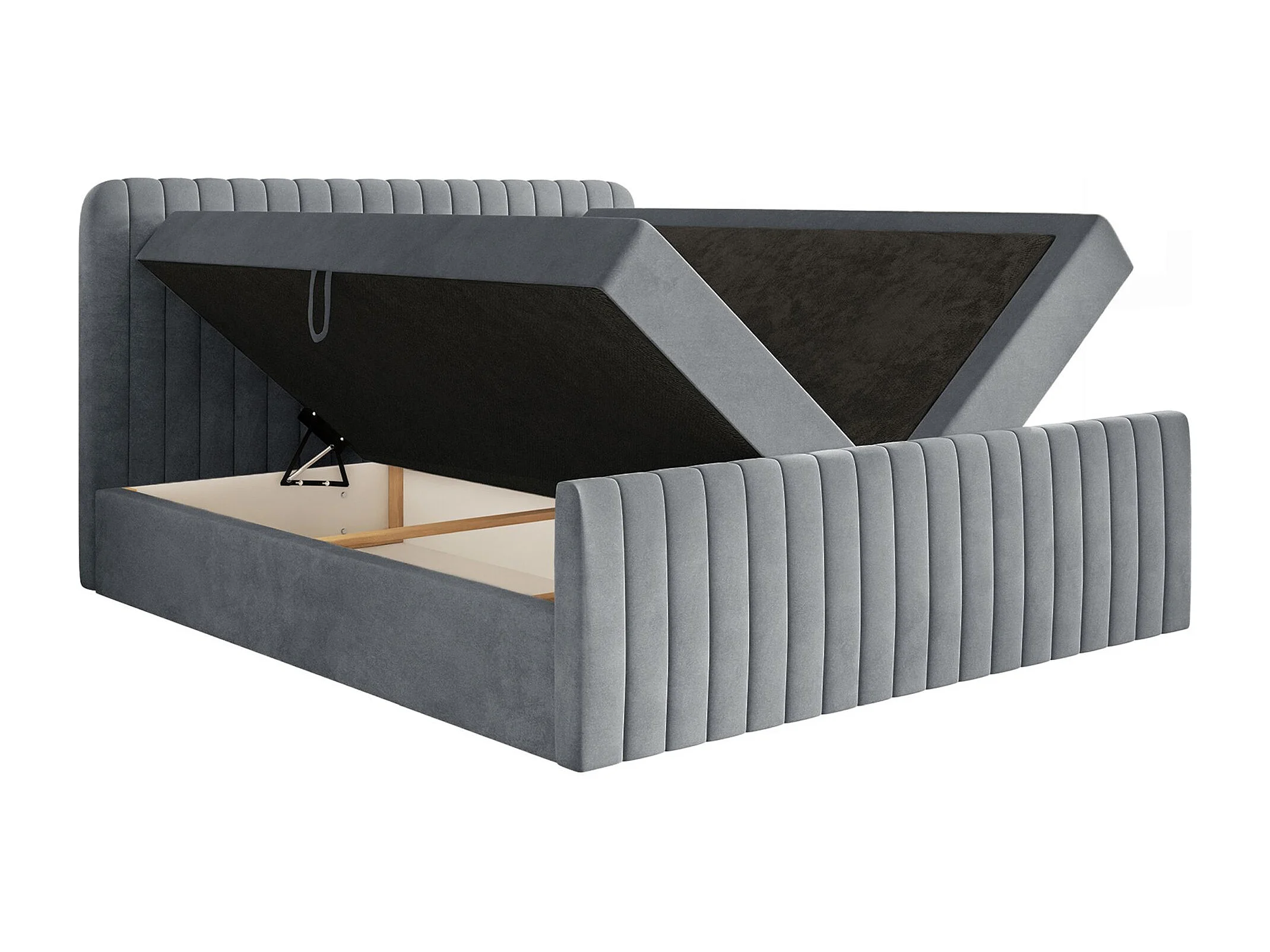 Lit continental avec surmatelas - 180x200 cm - velours gris - SALIANO