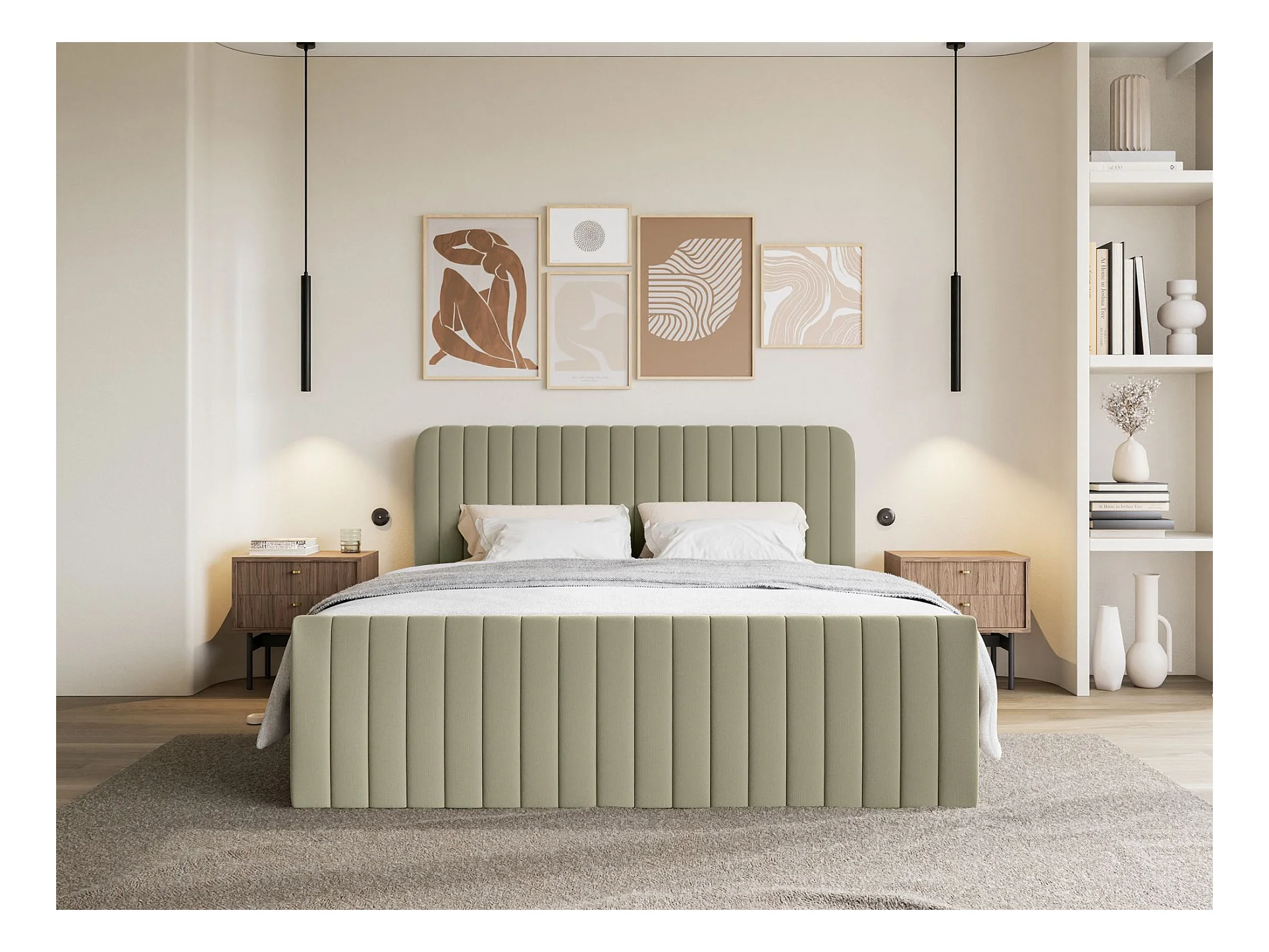 Lit continental - 140x200 cm - en tissu velours eucalyptus - SILENSIO