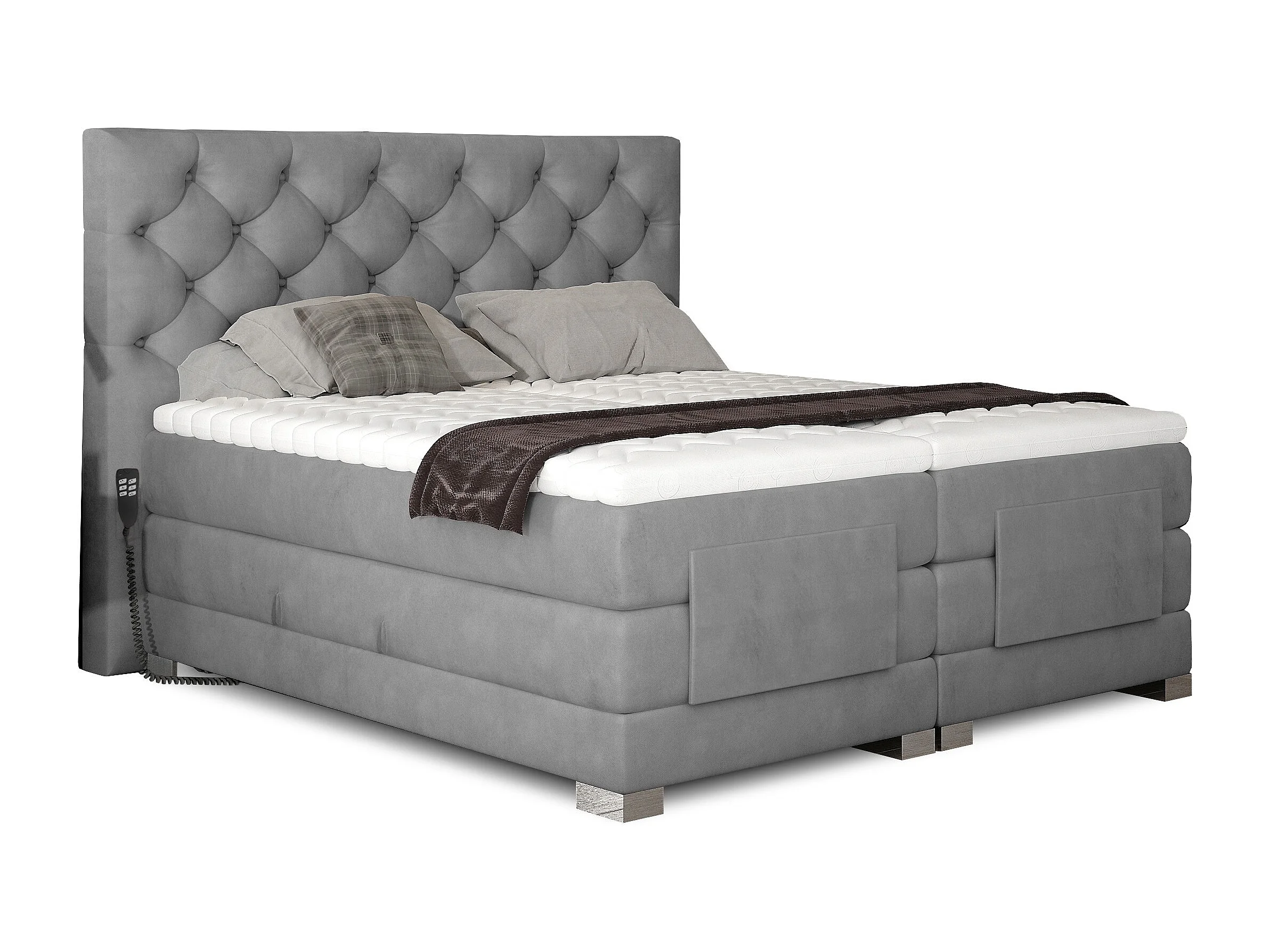 Lit boxspring électrique velours gris avec matelas et surmatelas Arkos-140x200