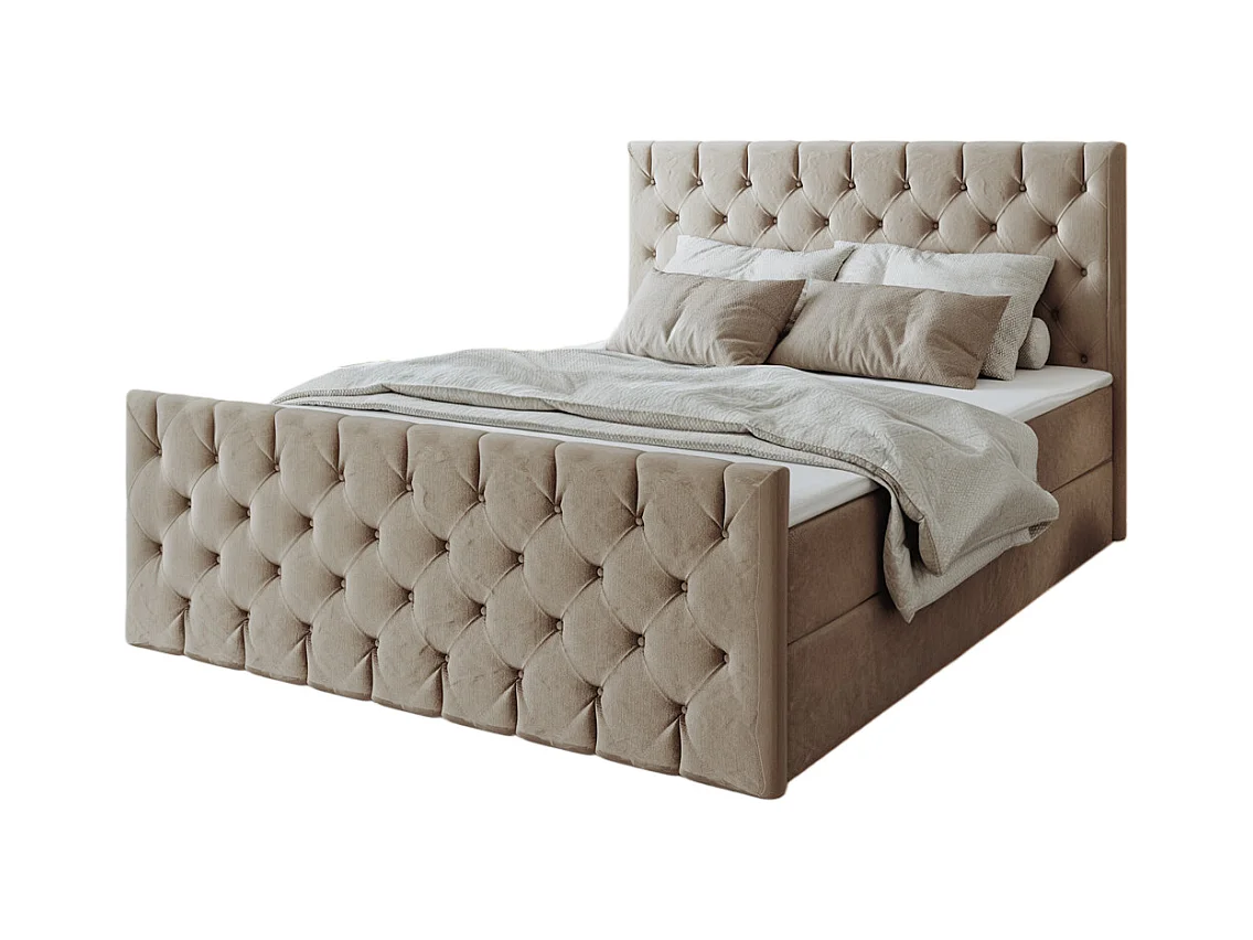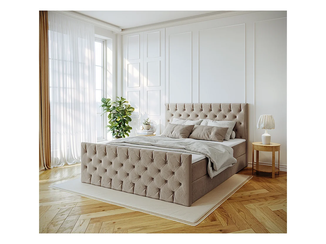 Lit continental Mars avec sommier tissu Riviera Biscuit 200x200 cm