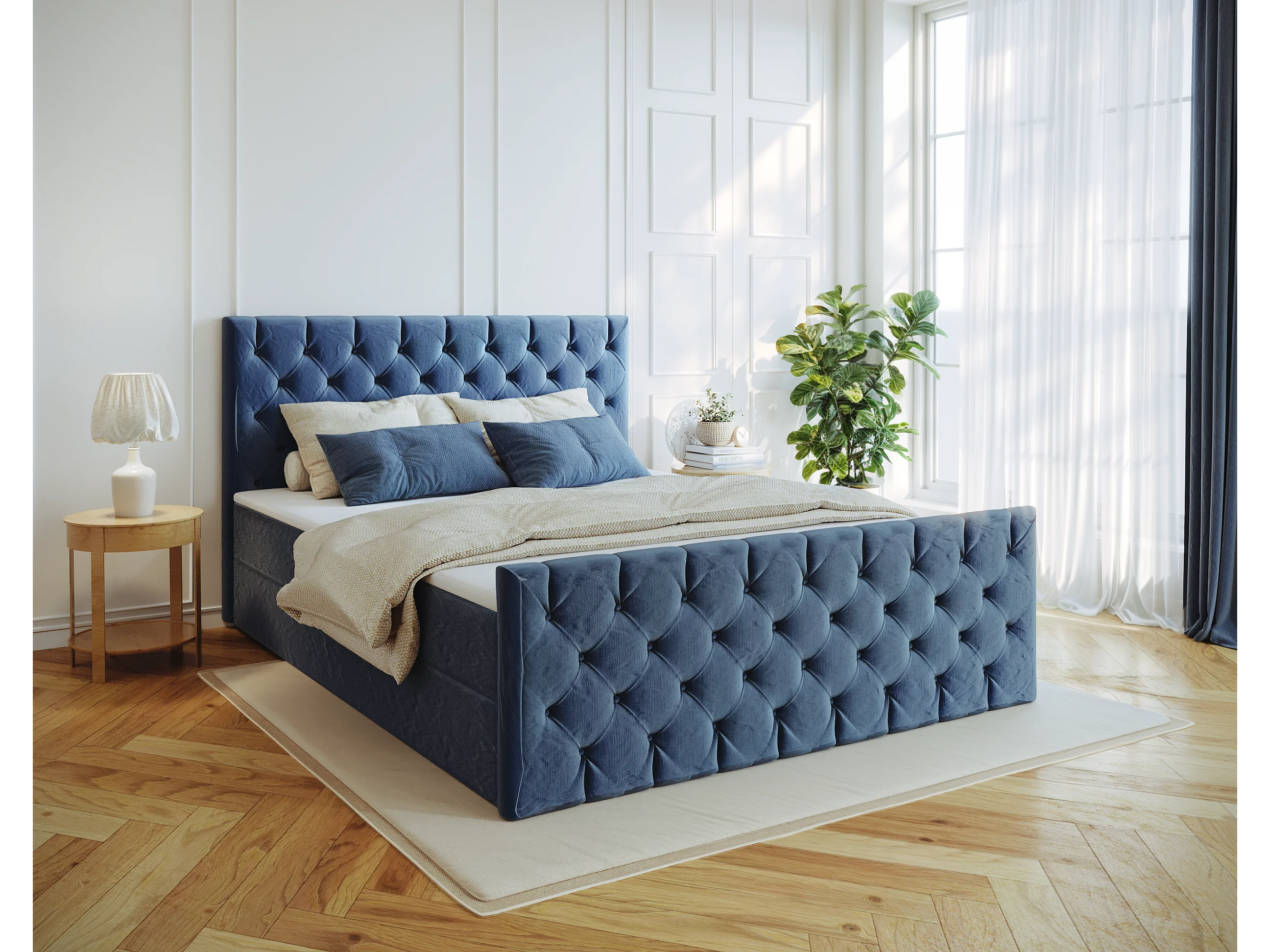 Lit continental Mars avec sommier tissu Riviera Blue 180x200 cm