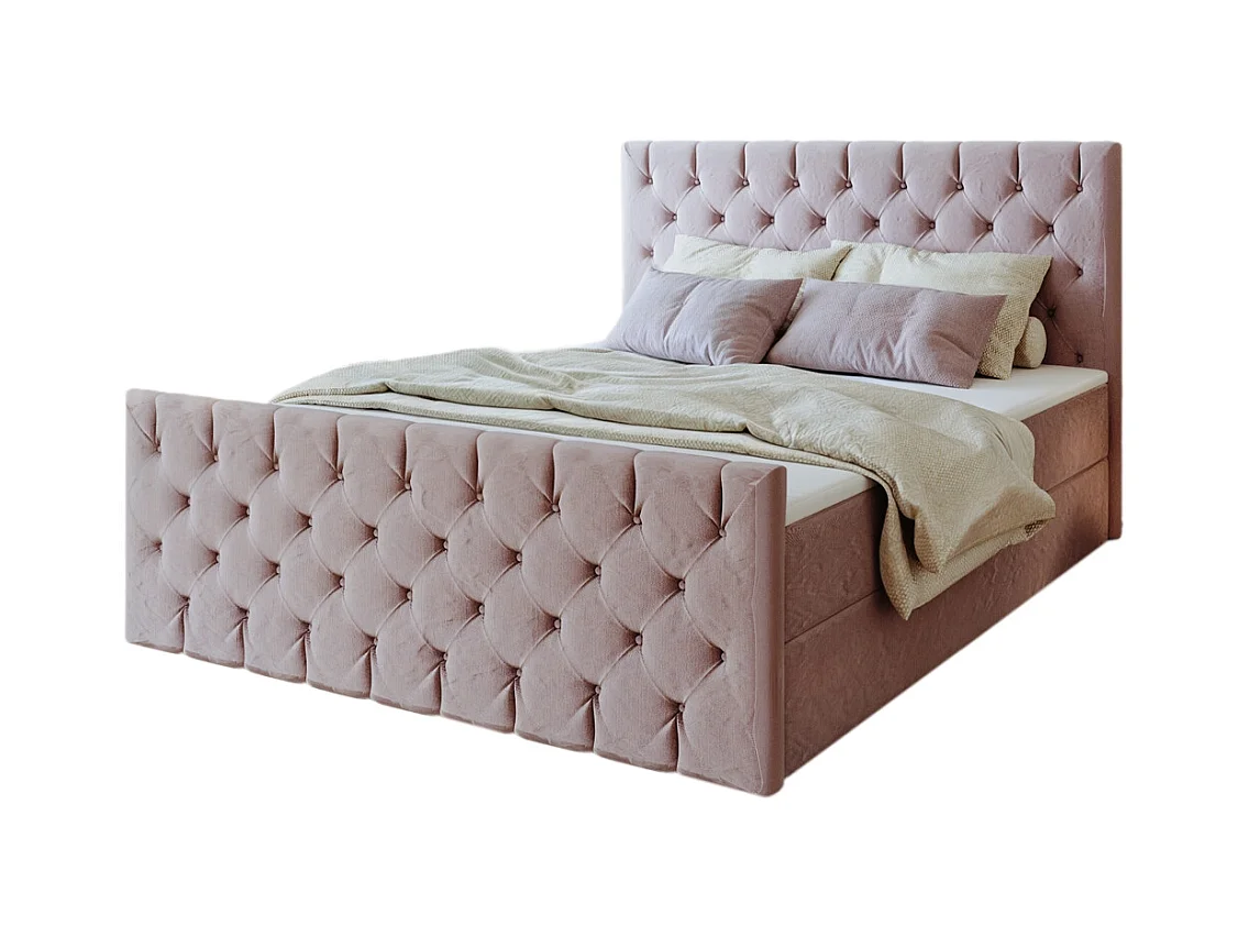 Lit boxspring avec rangement DREAM - matelas - surmatelas - rose - 180x200 cm
