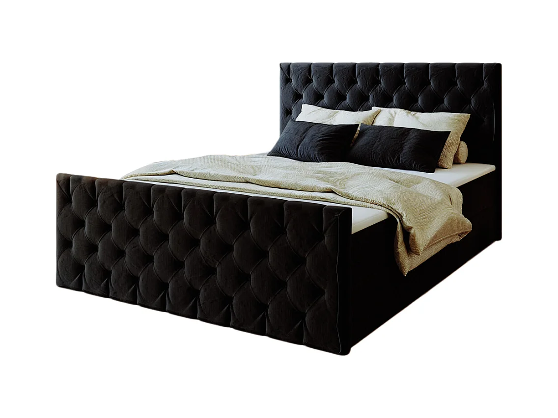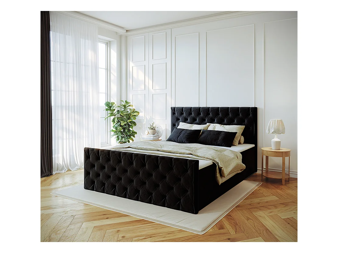 Lit continental tissu noir avec matelas et surmatelas Louna-160x200