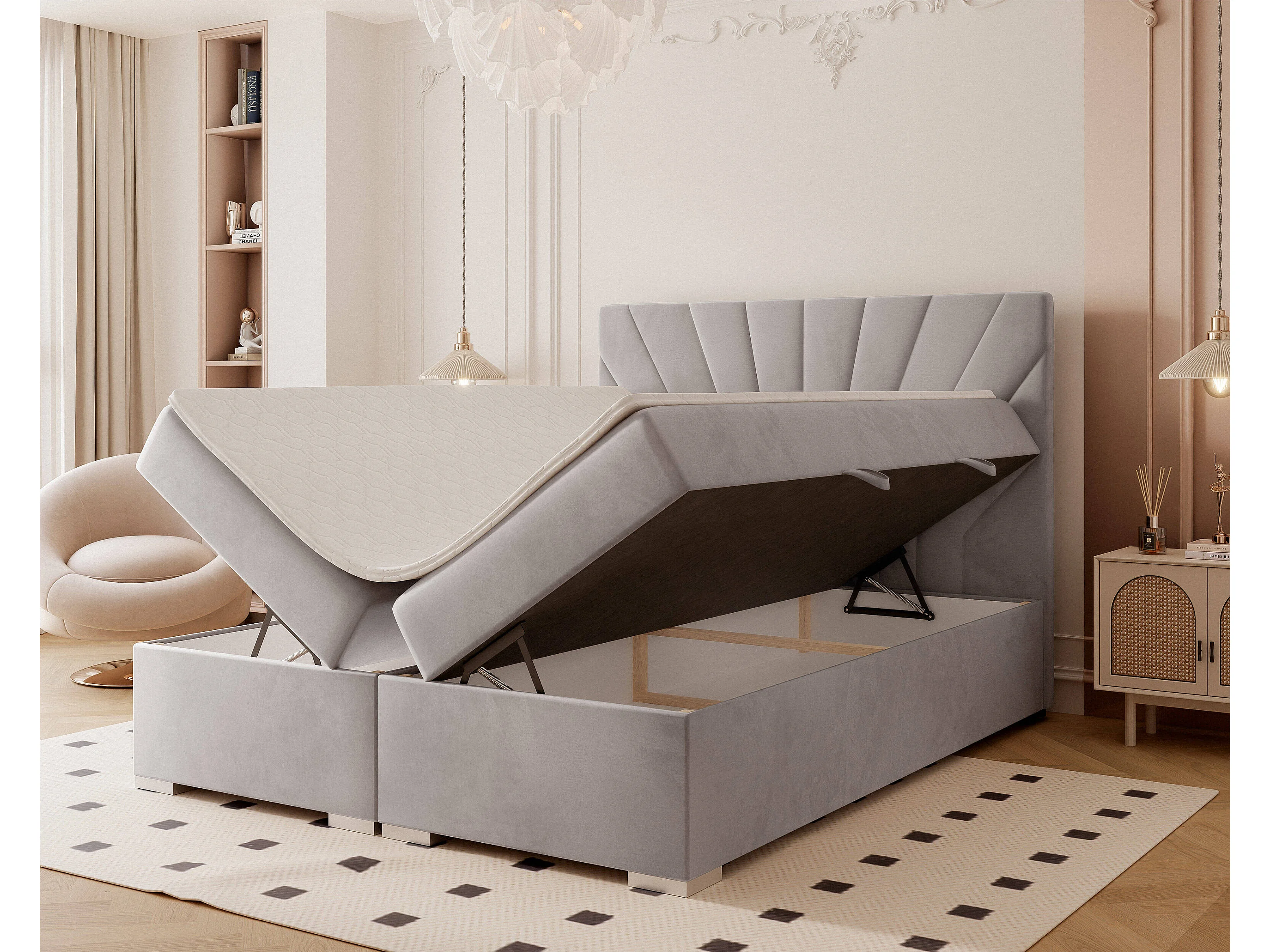 Lit boxspring avec sommier et surmatelas VIESTA tissu Poso gris clair 120x200 cm H2-Pocket