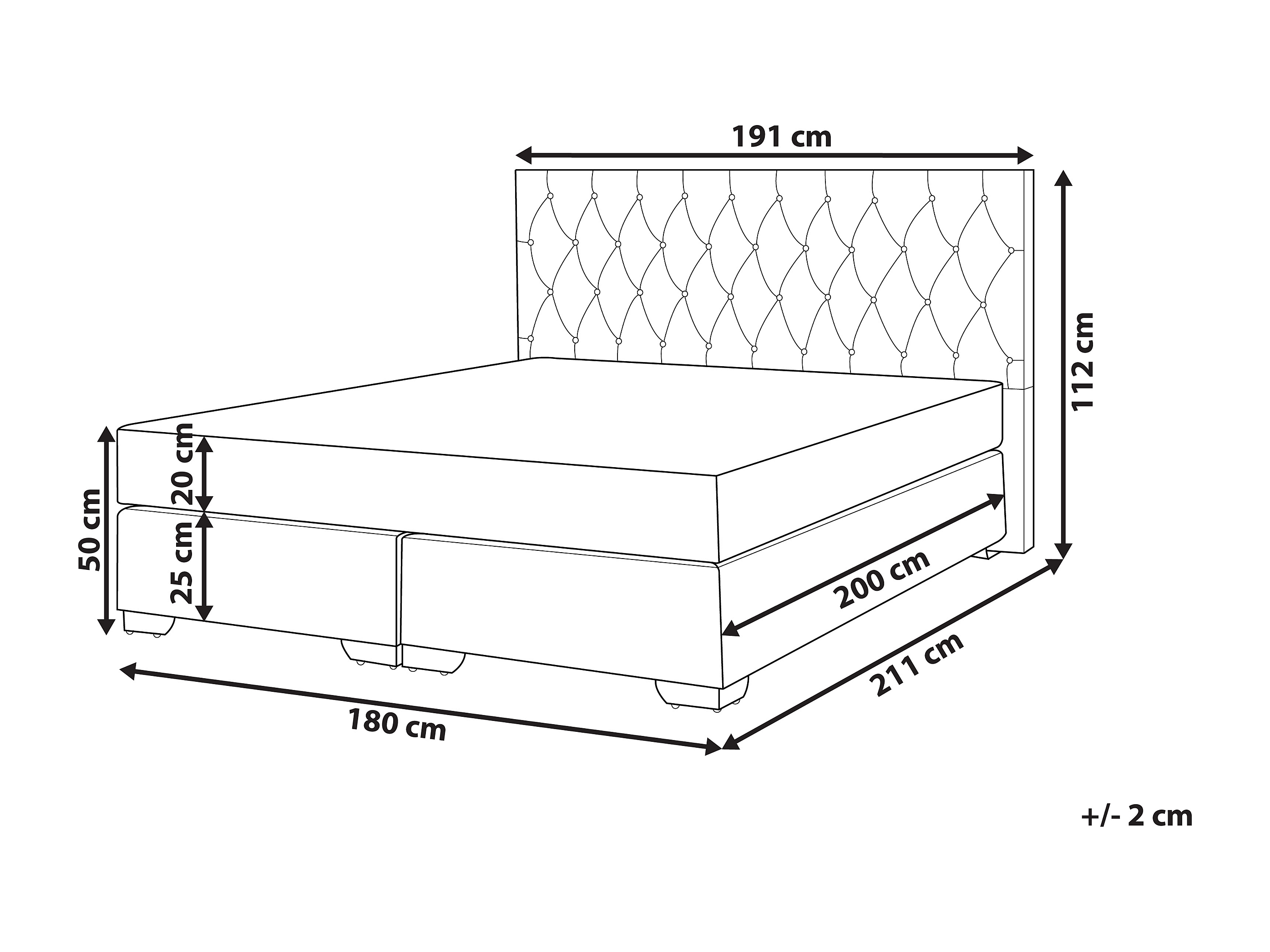 Lit Boxspring Tissu DUCHESS 180 x 200 cm Gris clair