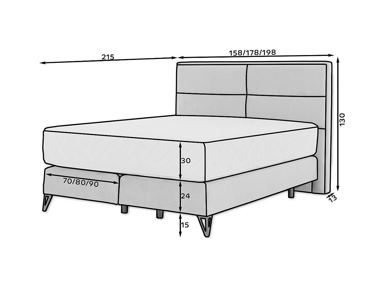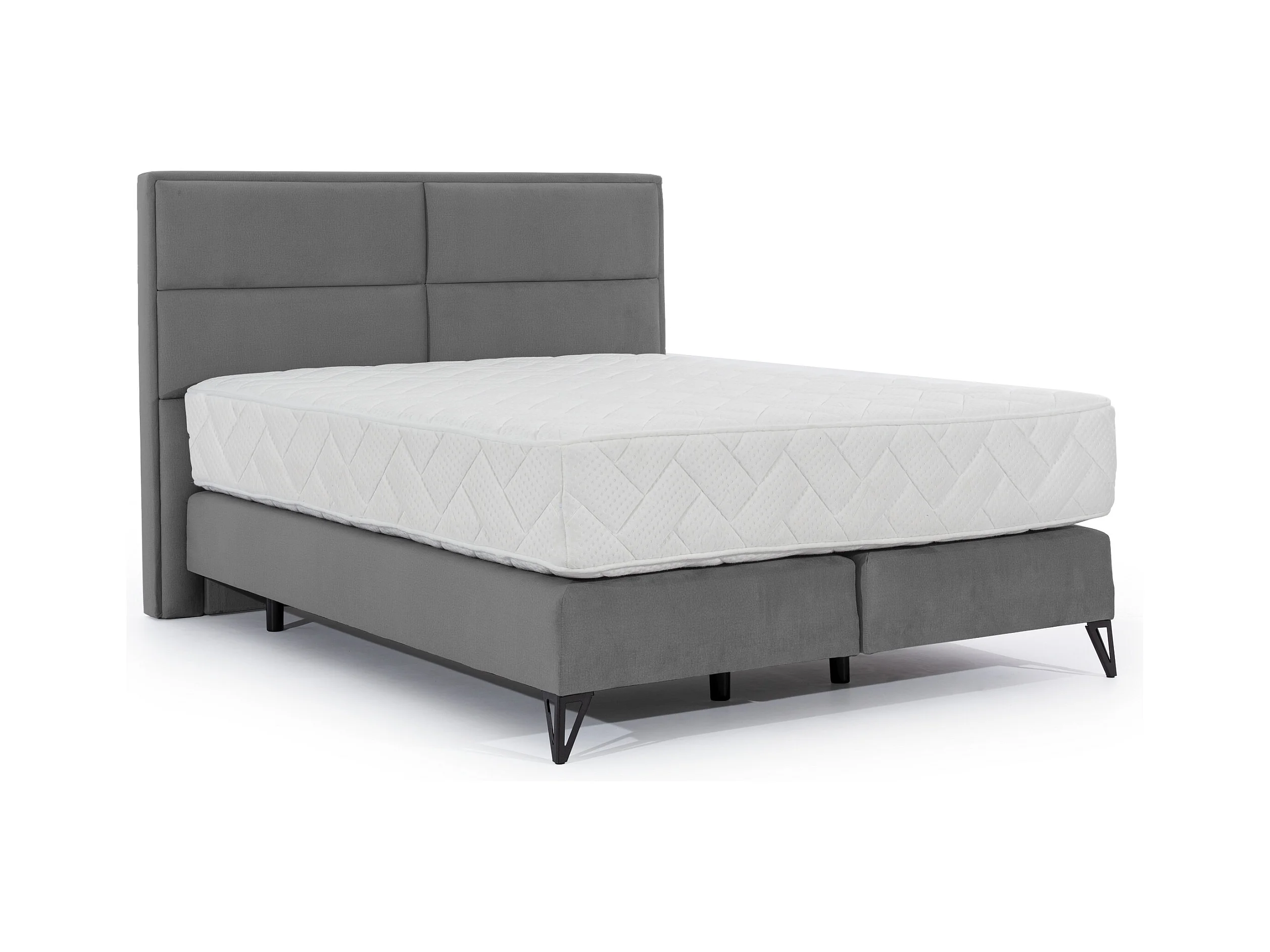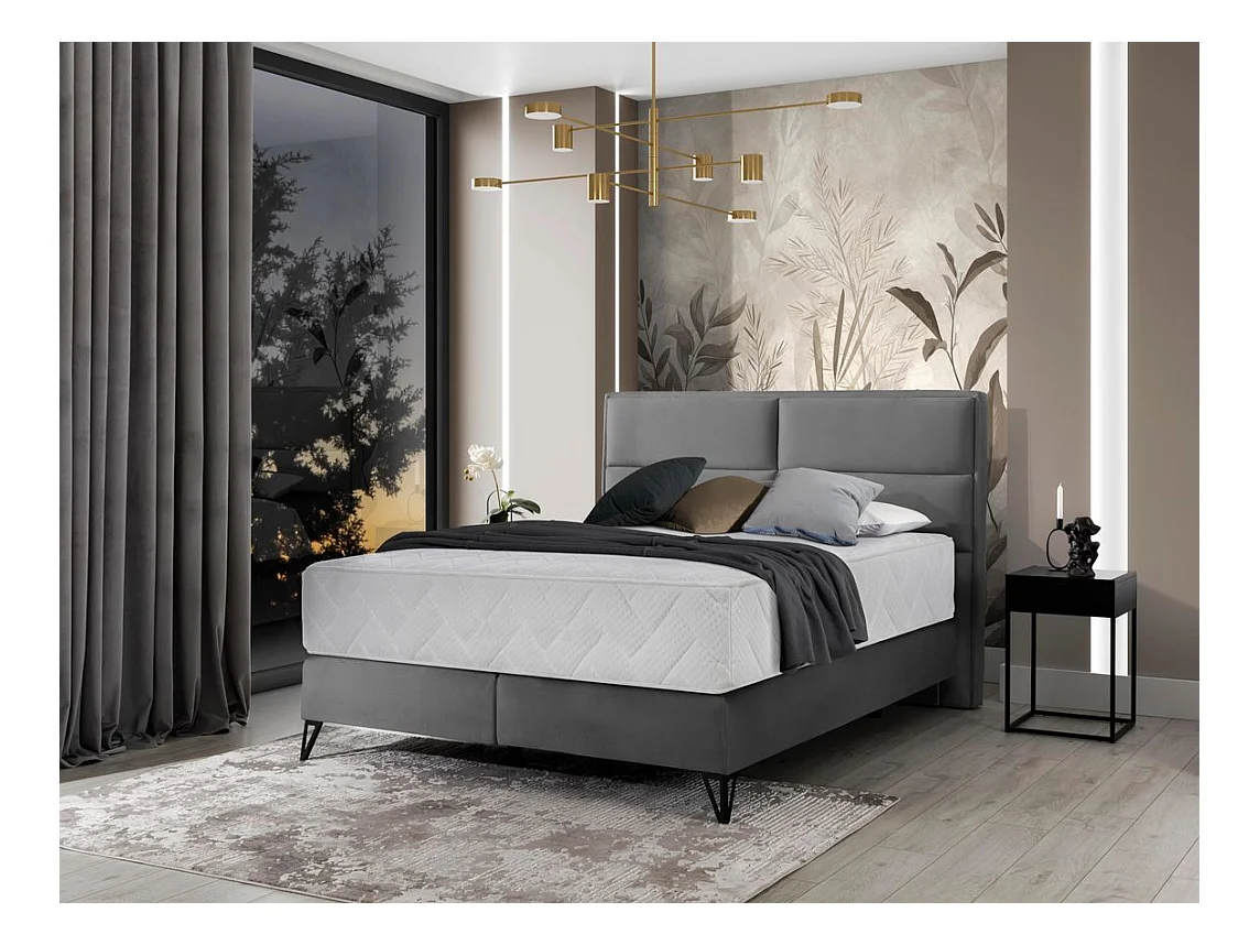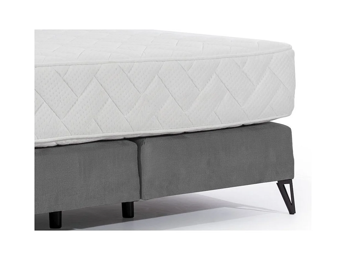 Lit continental tissu gris Tiempo avec matelas 30cm en latex et pied métal noir-140x200