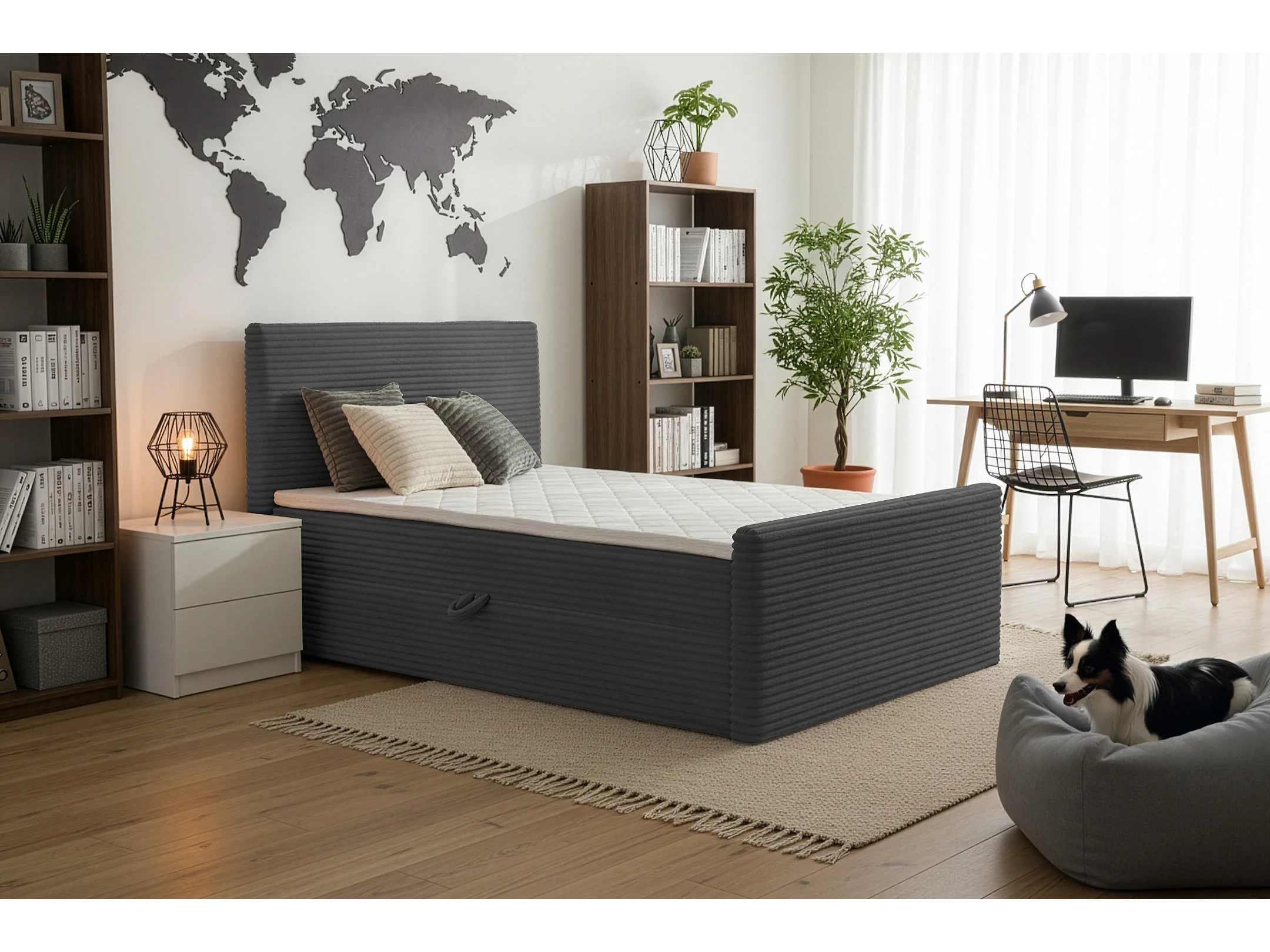 Lit continental Trento 140 avec coffre de rangement, tissu Velo gris foncé (17)