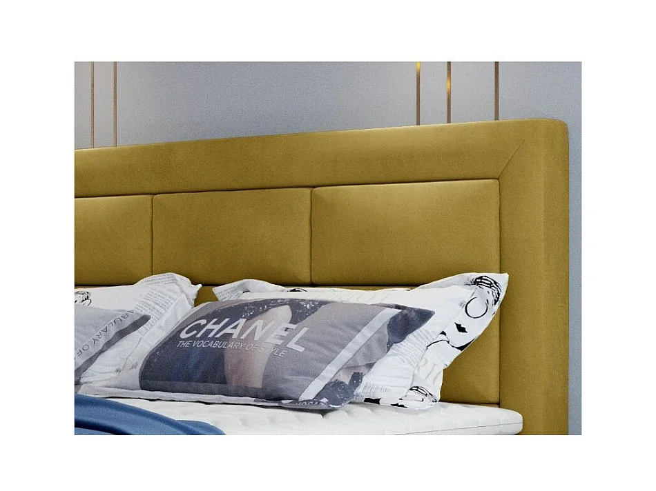 Lit continental velours jaune Balore-Couchage 180x200 cm