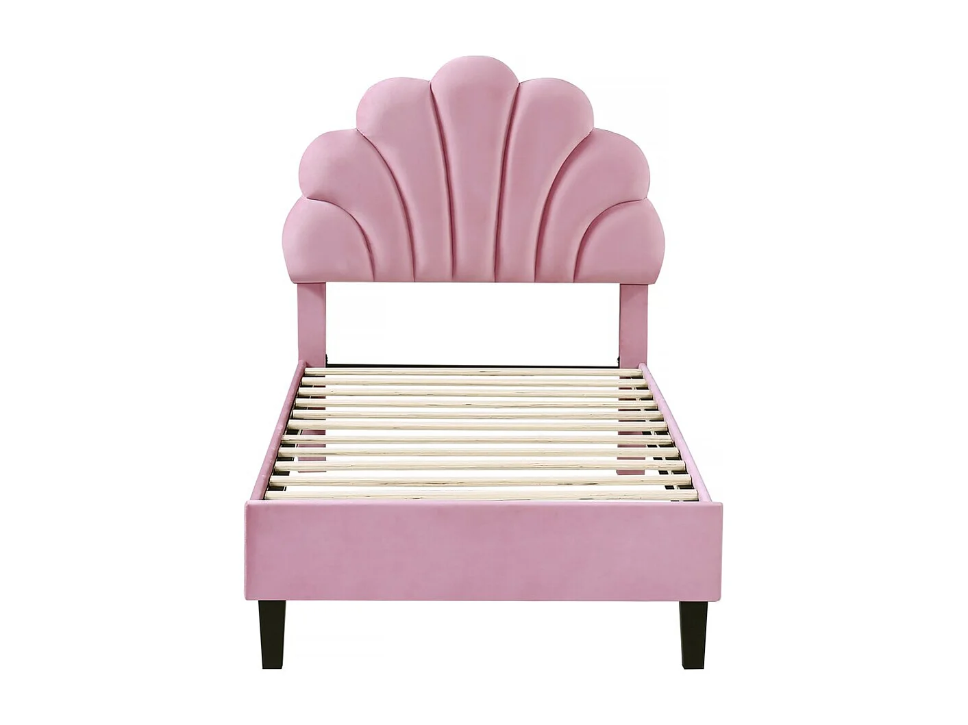 Lit coquillage 90 x 190 cm - Velours - Rose - MOANA