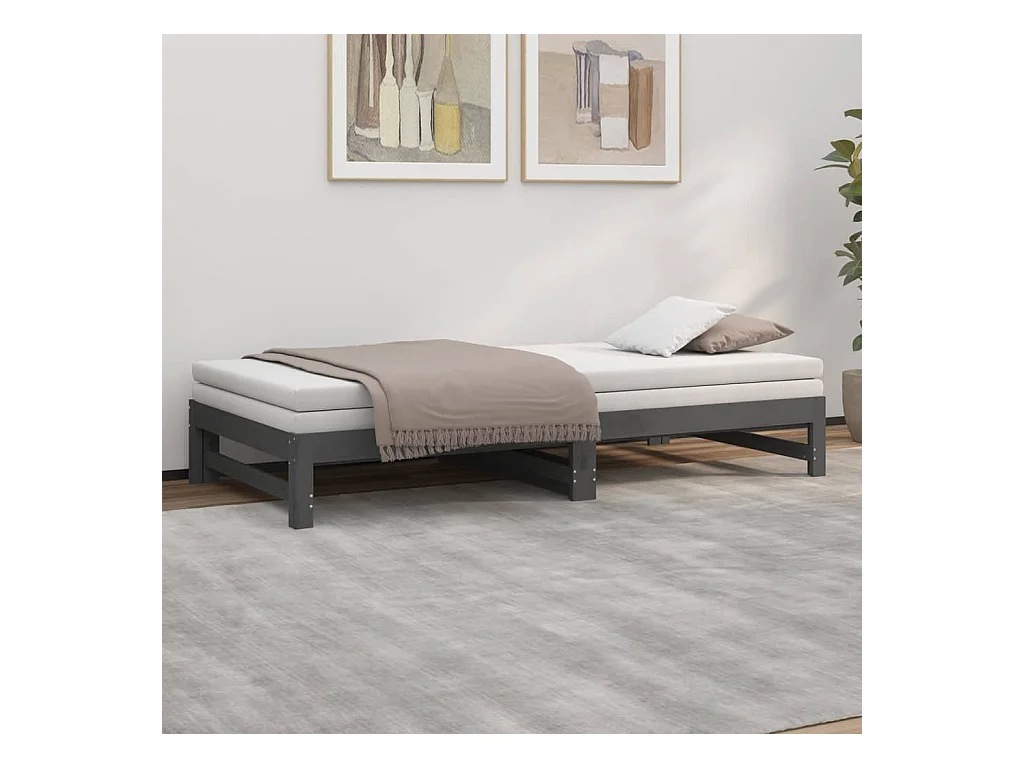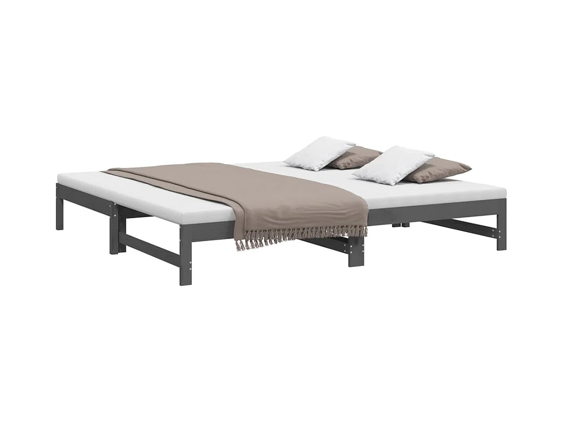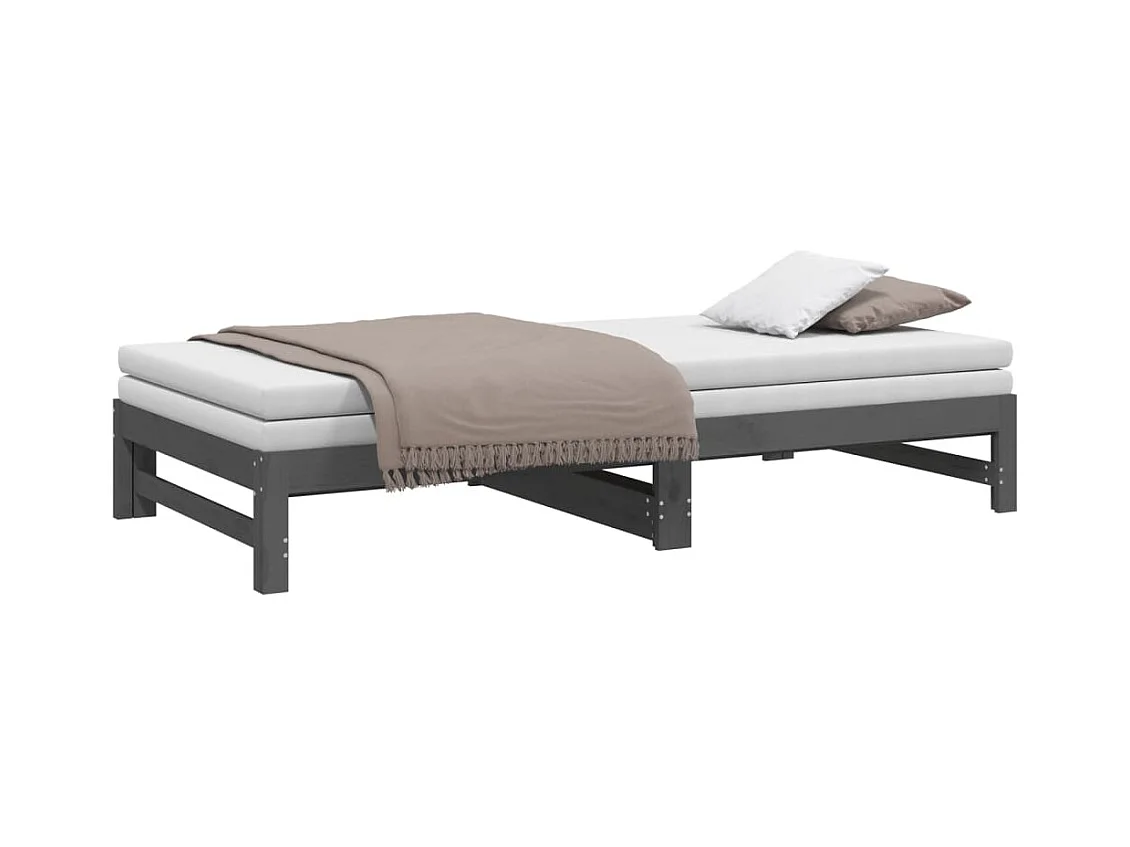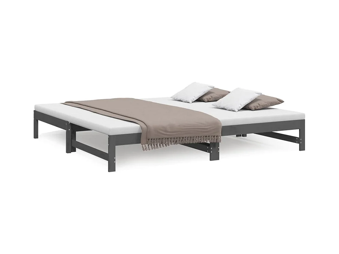 Lit coulissant Gris 2x(100x200) cm Bois de pin massif
