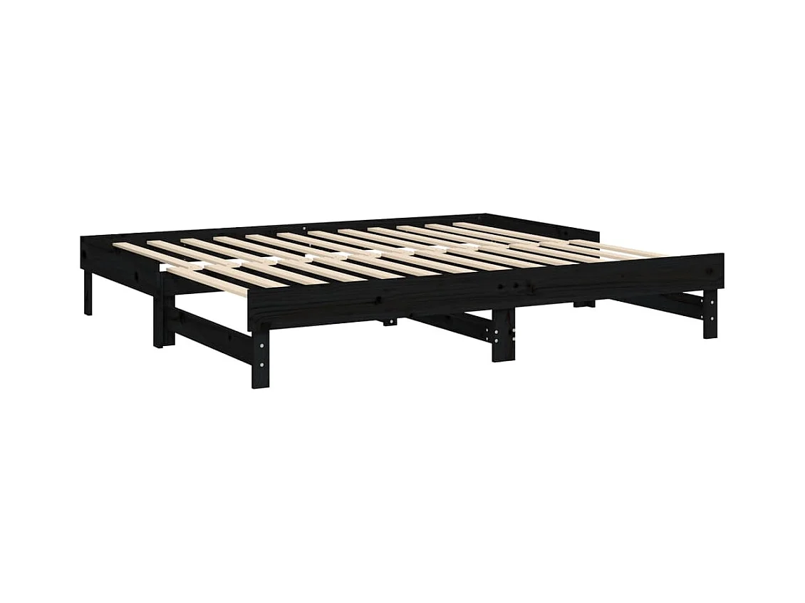 Lit coulissant Noir Bois de pin solide 2x(80x200) cm