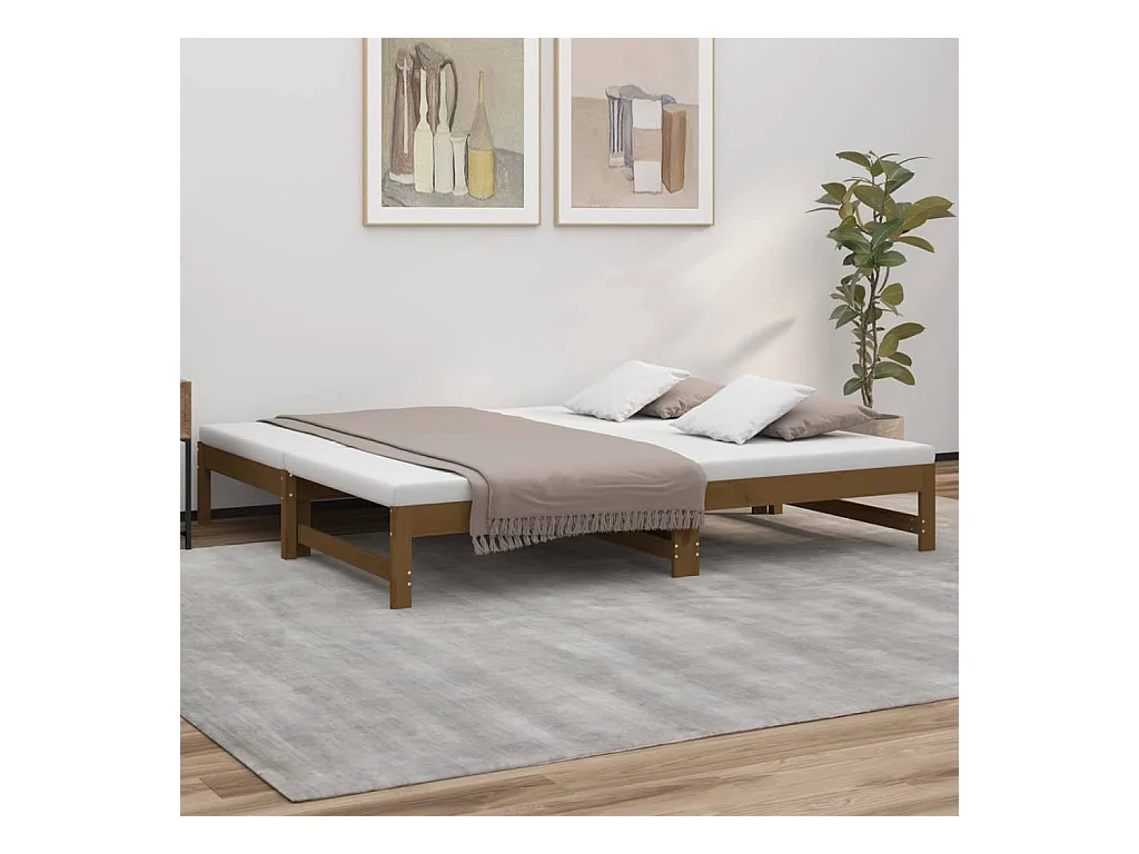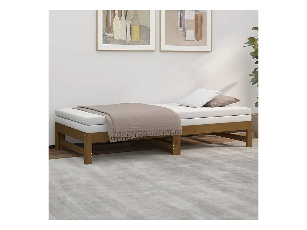 Lit coulissant sans matelas marron miel 2x(90x190) cm
