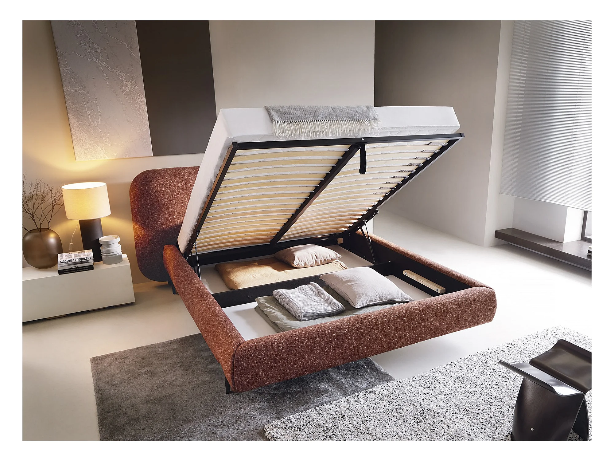 Lit coffre Booby prestige – Velours moderne et rangement optimisé-Couleur Rouge tomette-160x200