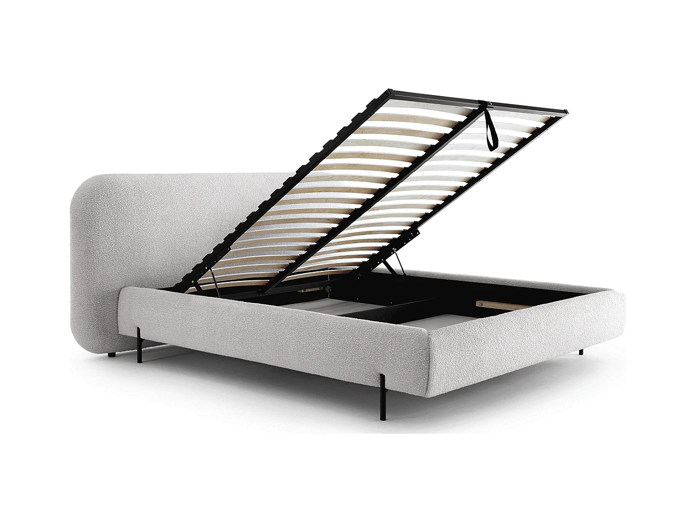 Lit rembourré Marco avec tête de lit, 160 x 200 cm, lit double avec coffre de rangement et sommier à lattes en métal, tissu bouclé, couleur : gris