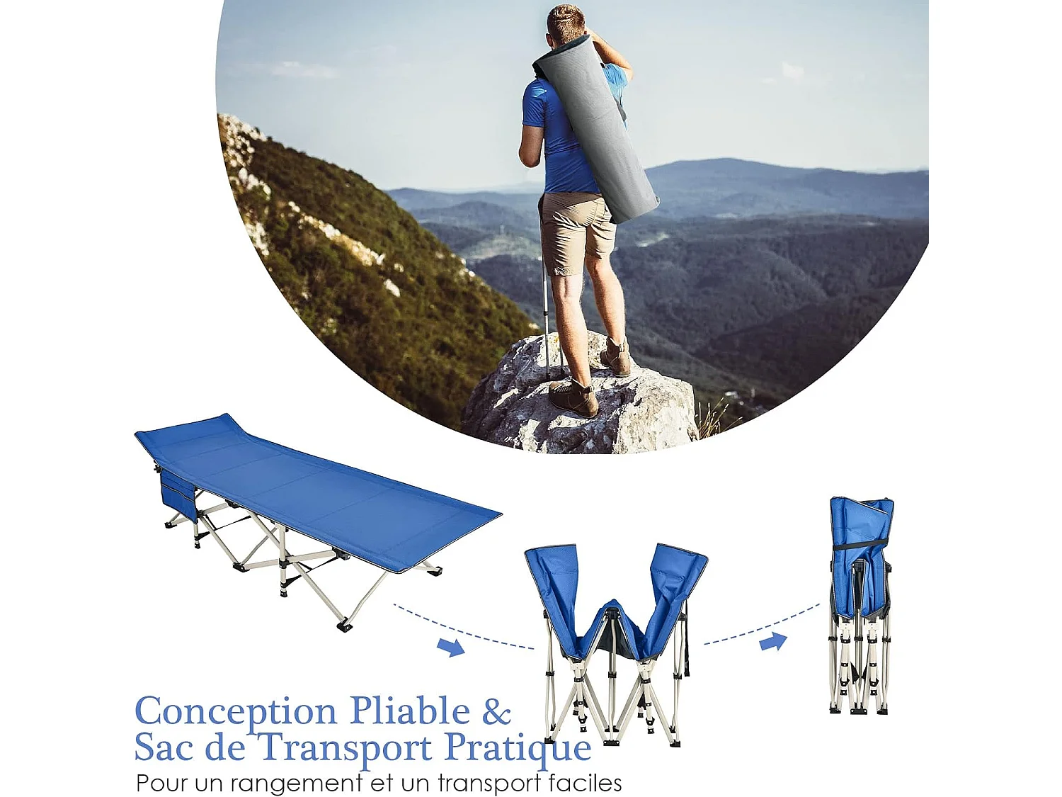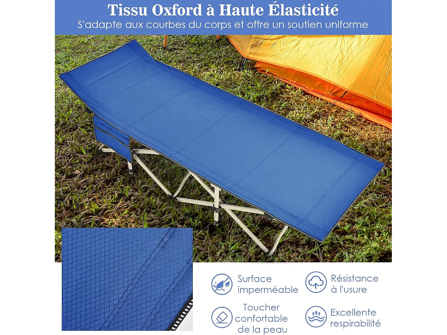 lit de CamBoisg Pliable, Charge jusqu'à 400 kg, lit de Voyage à Pliage Rapide avec Sac de Transport Bleu