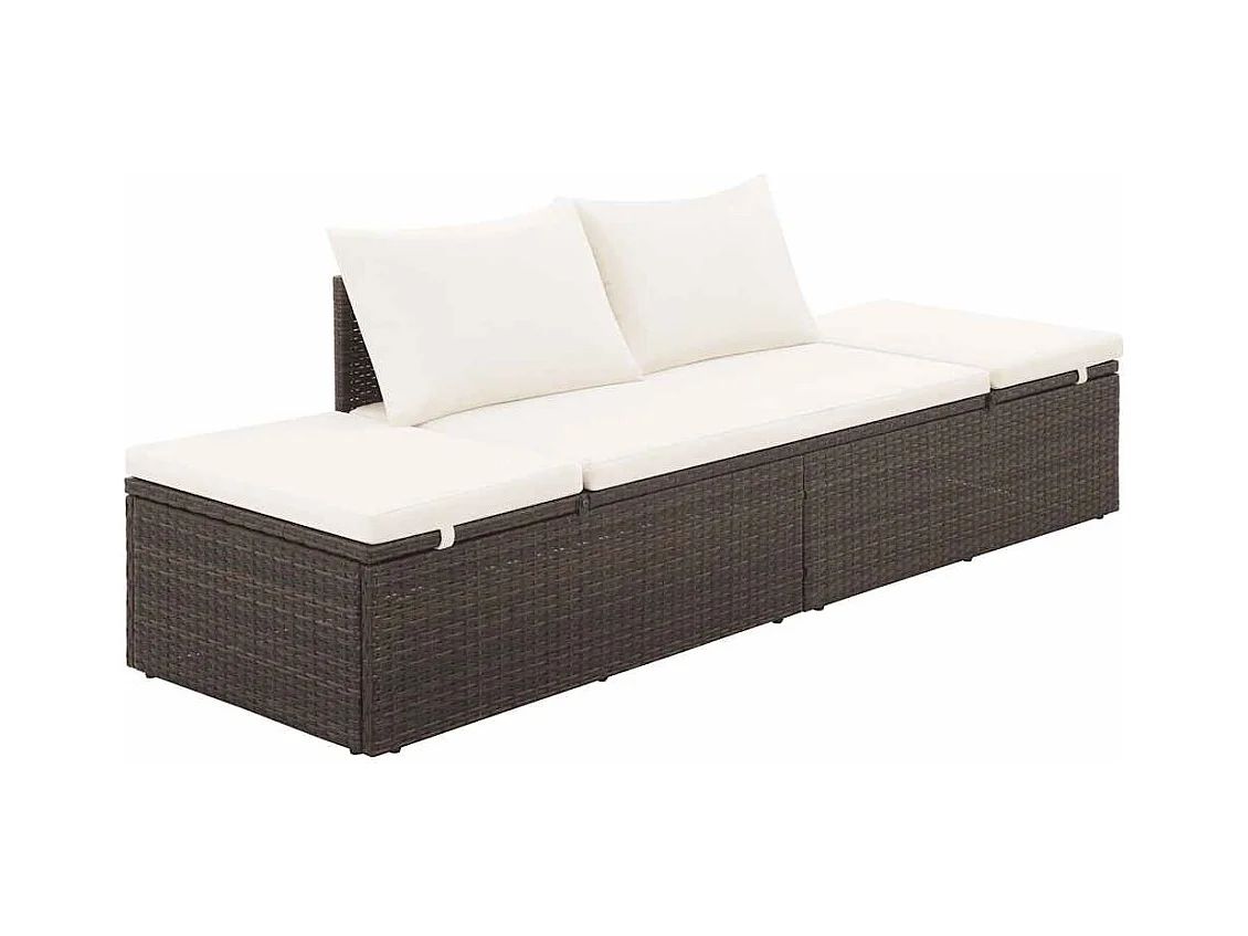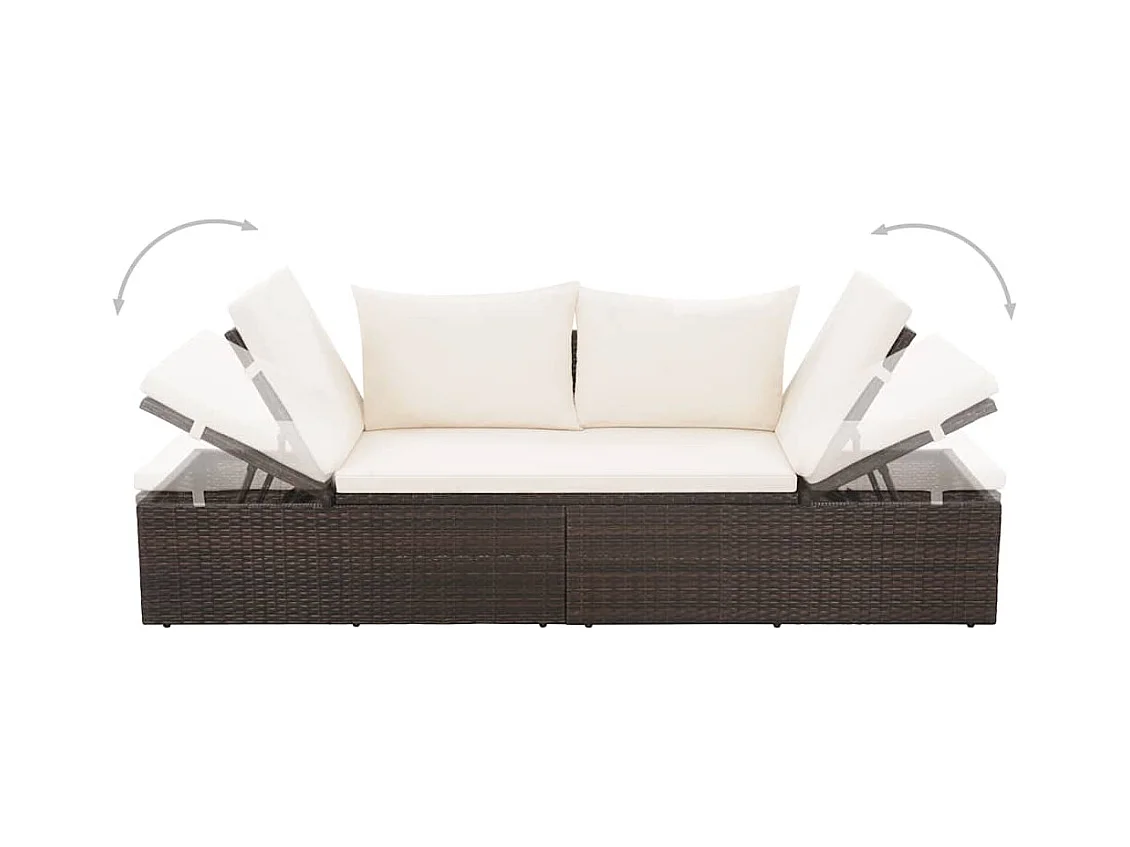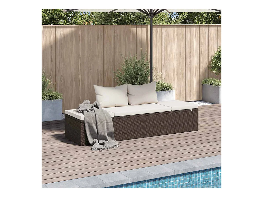 Lit de jardin avec coussin et oreillers Résine tressée Marron