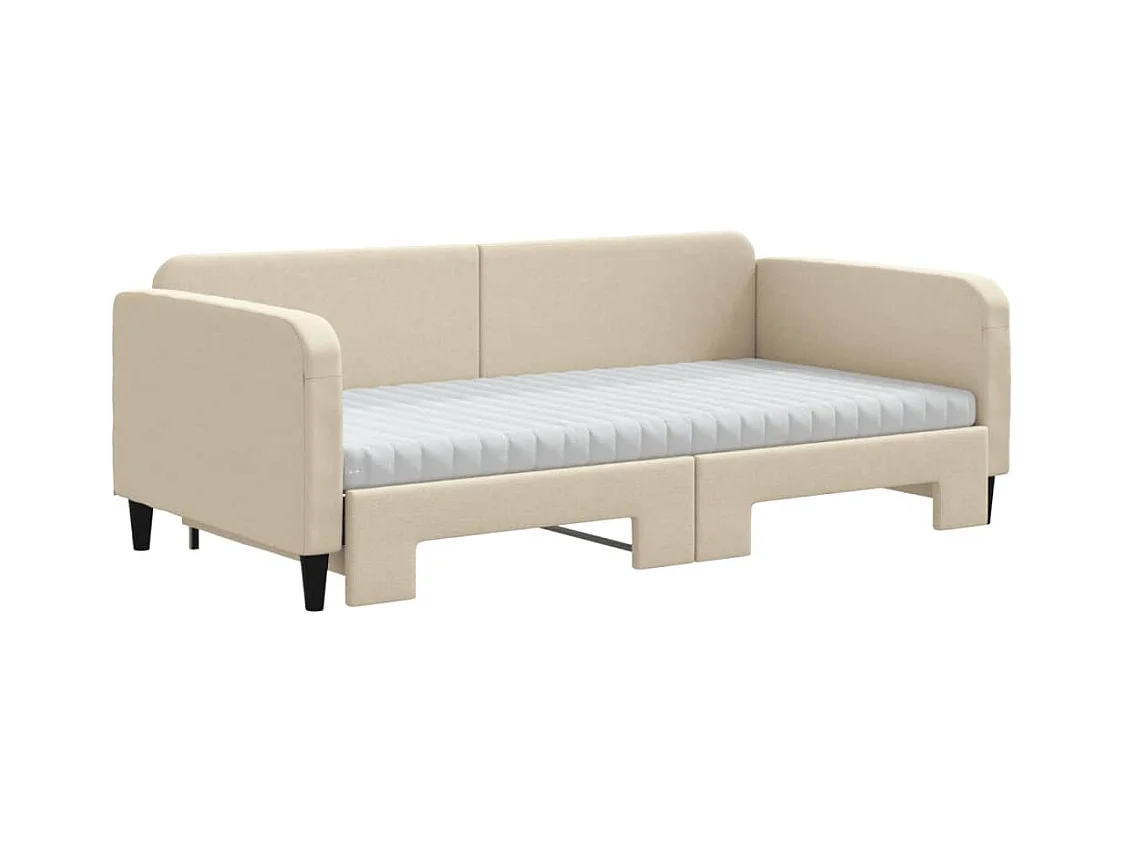 Lit de jour avec gigogne et matelas crème 100x200 cm tissu