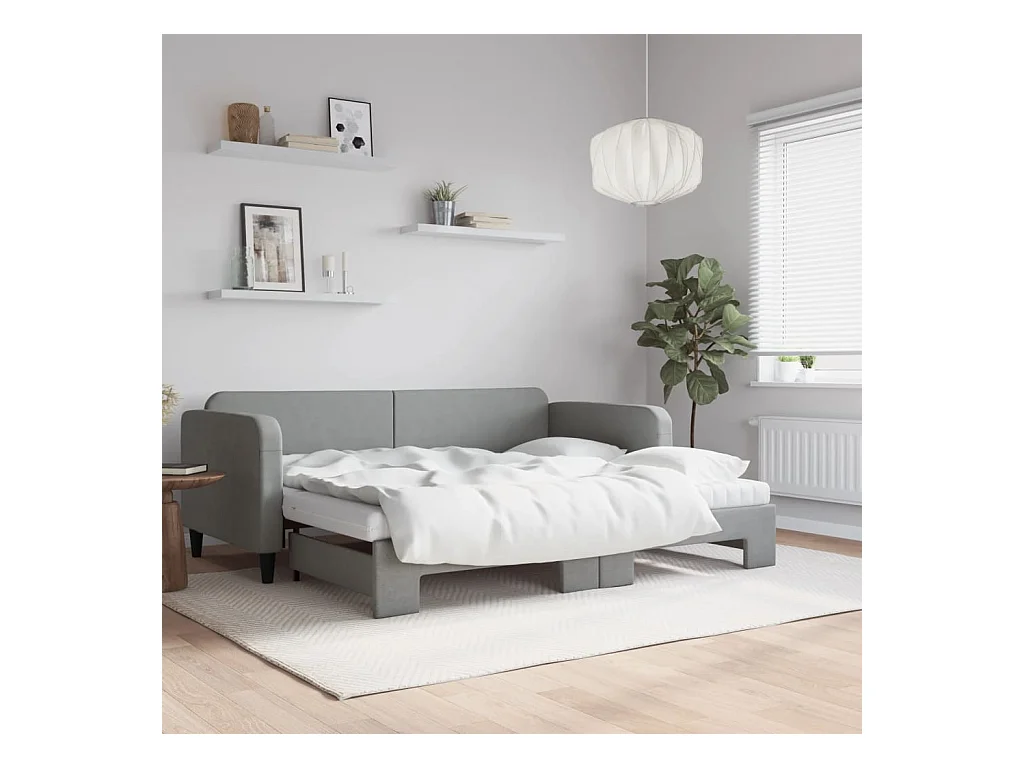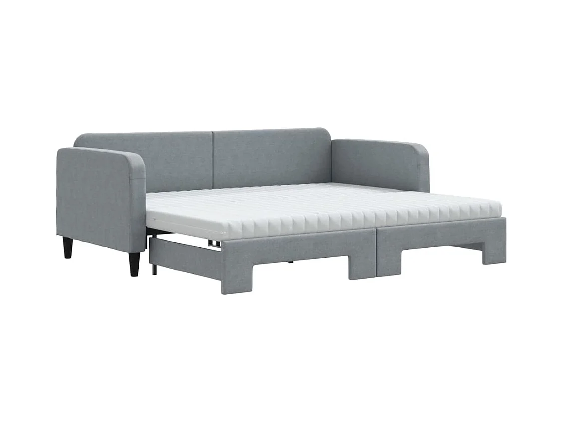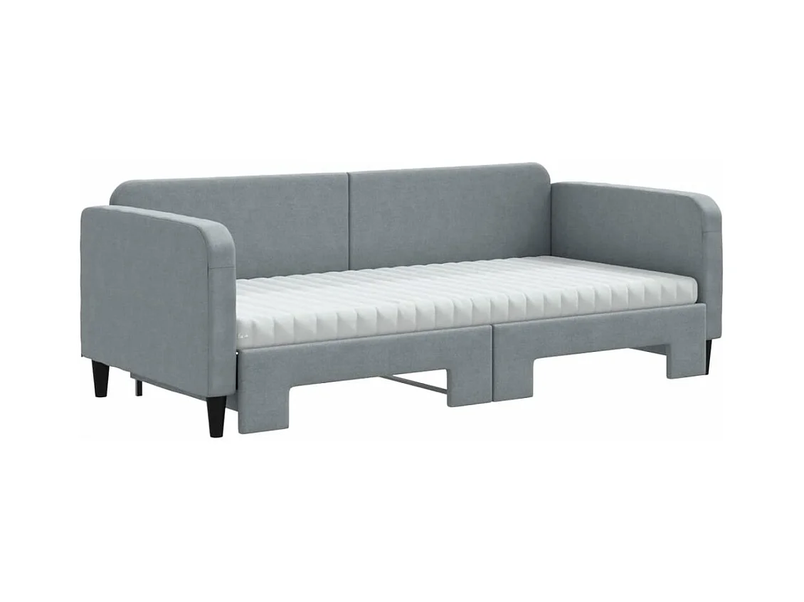 Slaapbank onderschuifbed en matrassen 90x190 cm stof lichtgrijs
