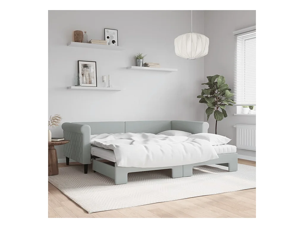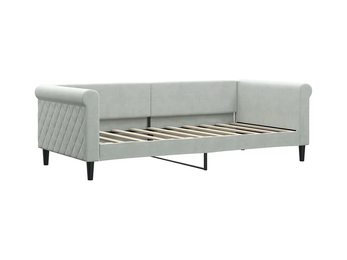 Lit de jour avec gigogne et matelas gris clair 90x190cm velours