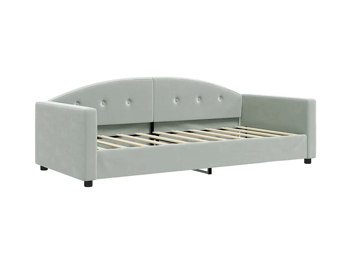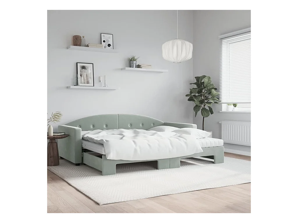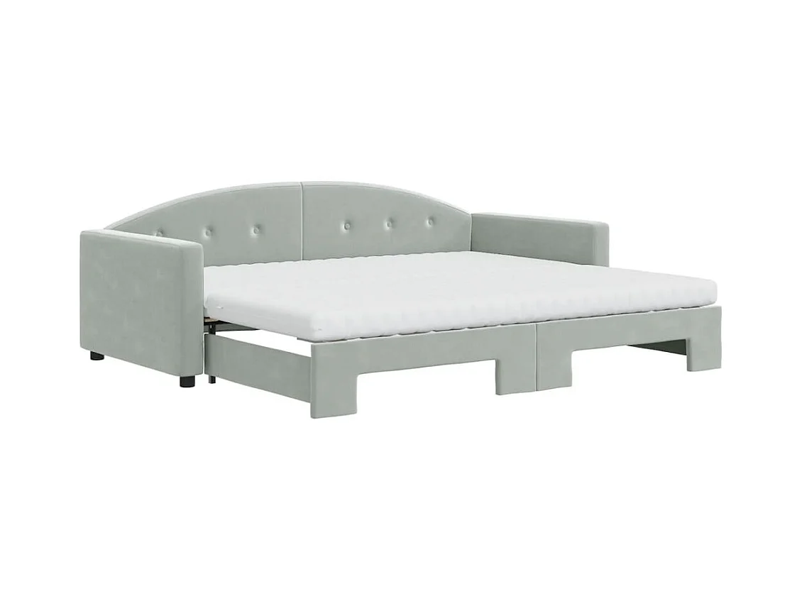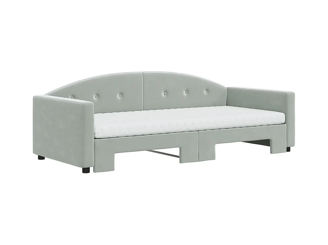 Lit de jour avec gigogne et matelas gris clair 90x190cm velours