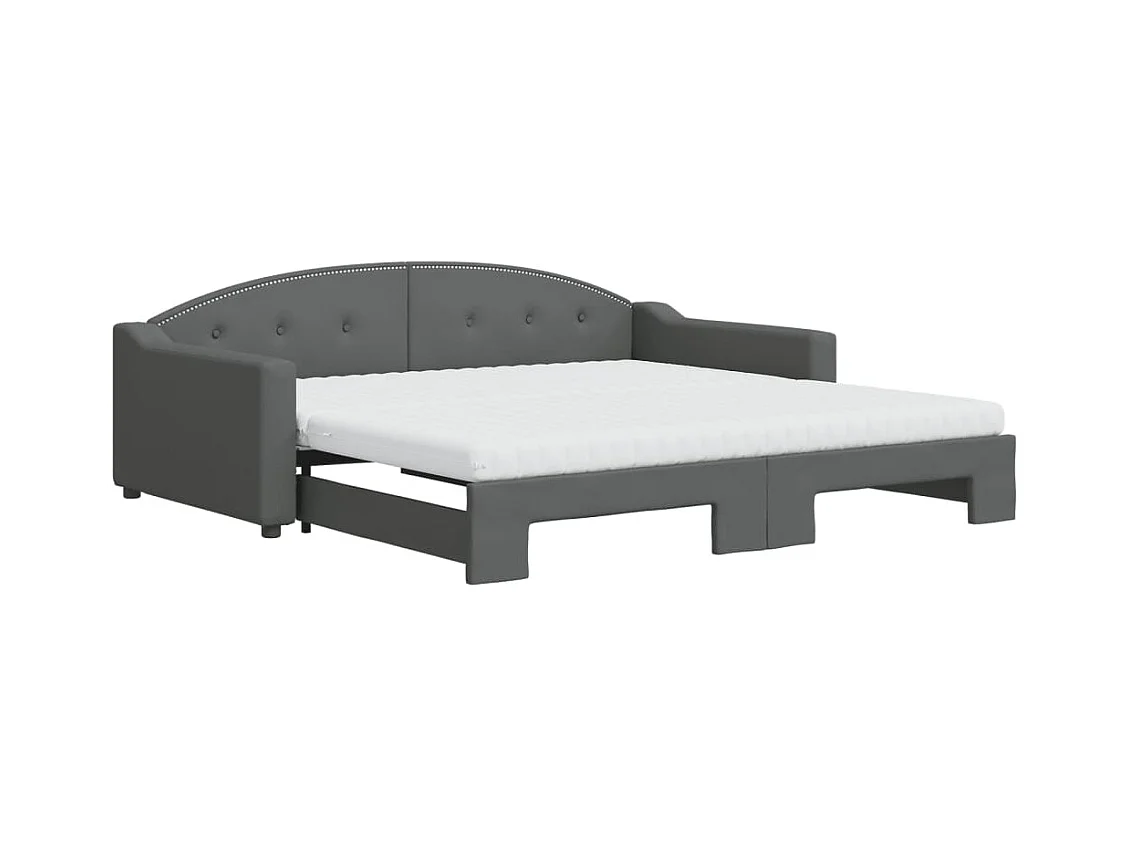 Lit de jour avec gigogne et matelas gris foncé 100x200 cm tissu