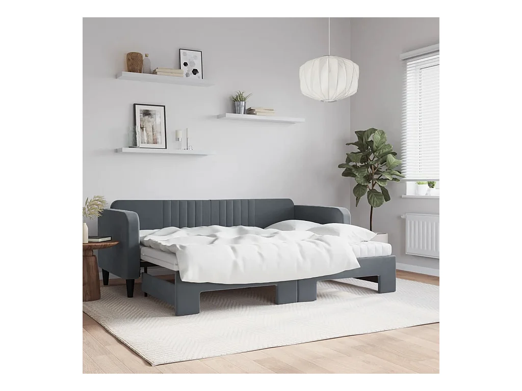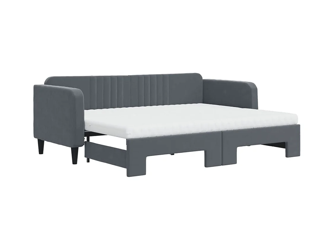 Lit de jour avec gigogne et matelas gris foncé 80x200cm velours