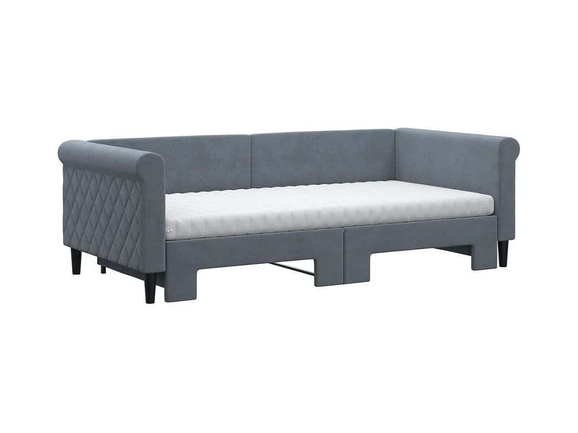 Lit de jour avec gigogne et matelas gris foncé 90x190cm velours