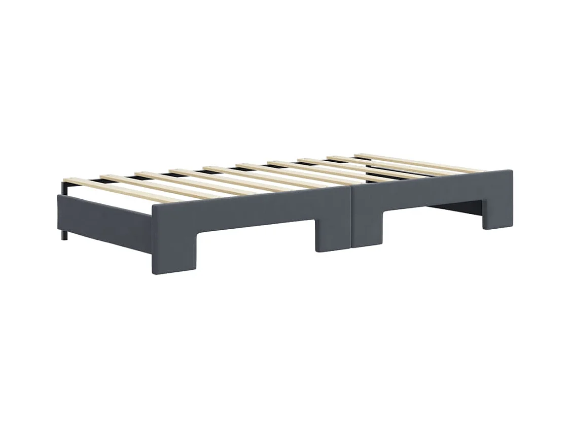 Lit de jour avec gigogne et matelas gris foncé 90x190cm velours