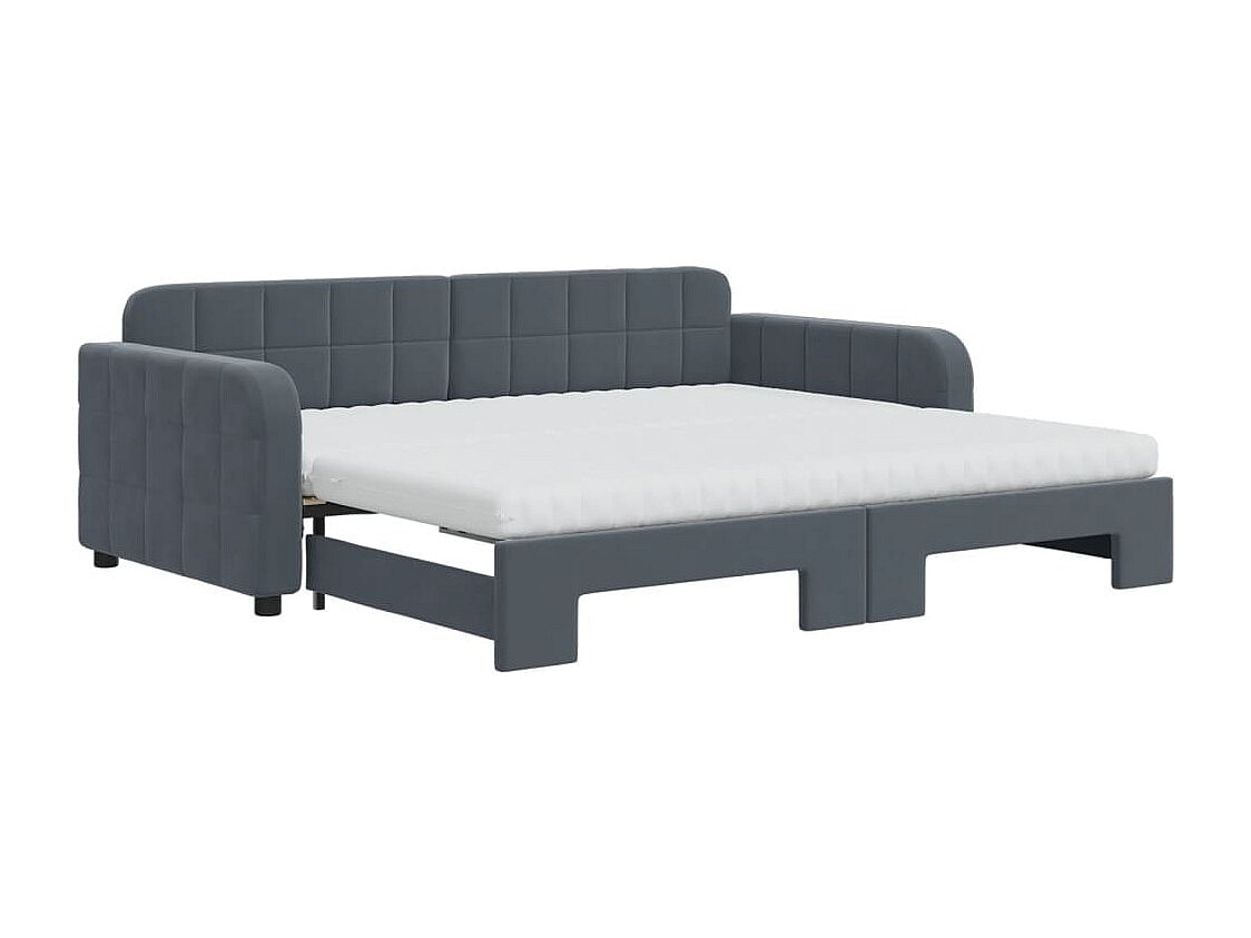Lit de jour avec gigogne et matelas gris foncé 90x190cm velours