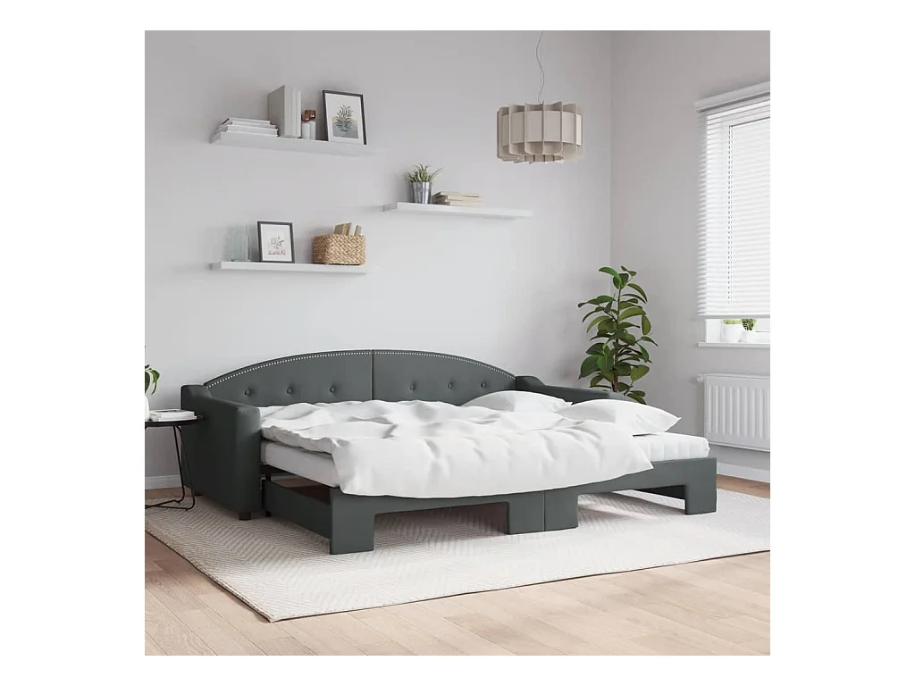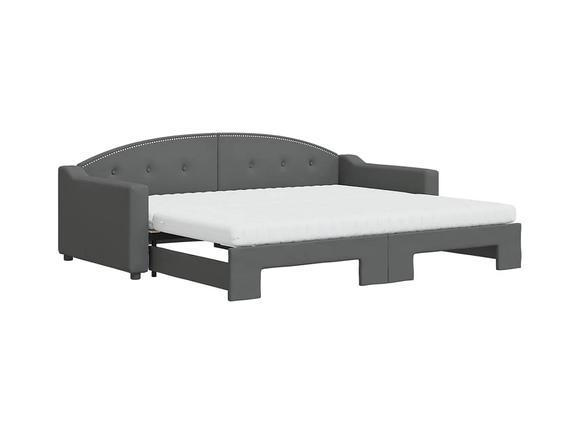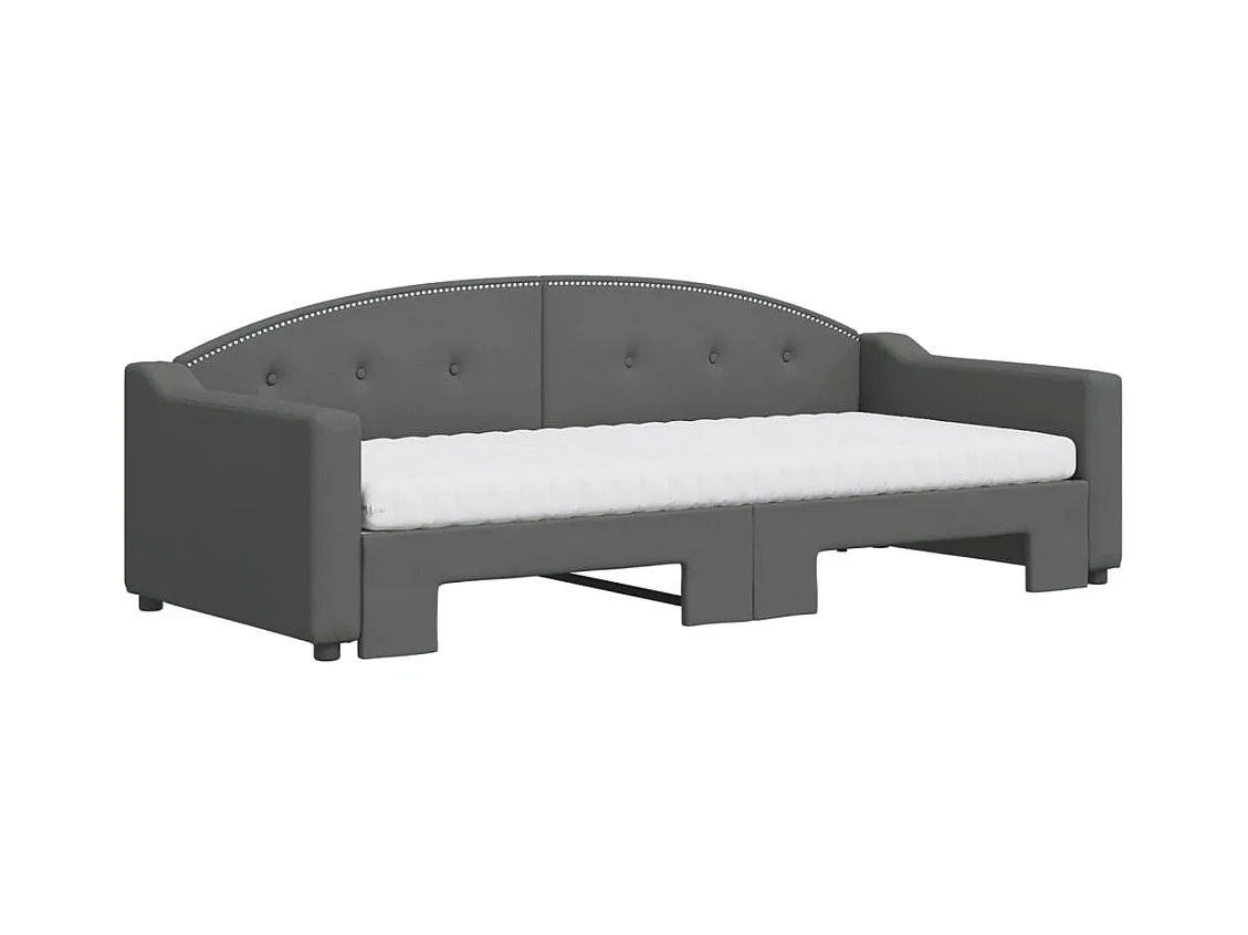 Lit de jour avec gigogne et matelas gris foncé 90x200 cm tissu