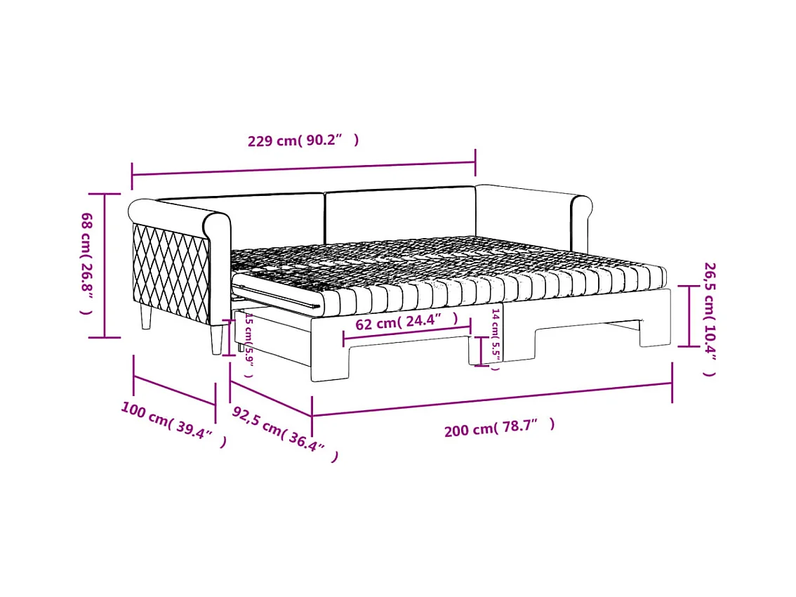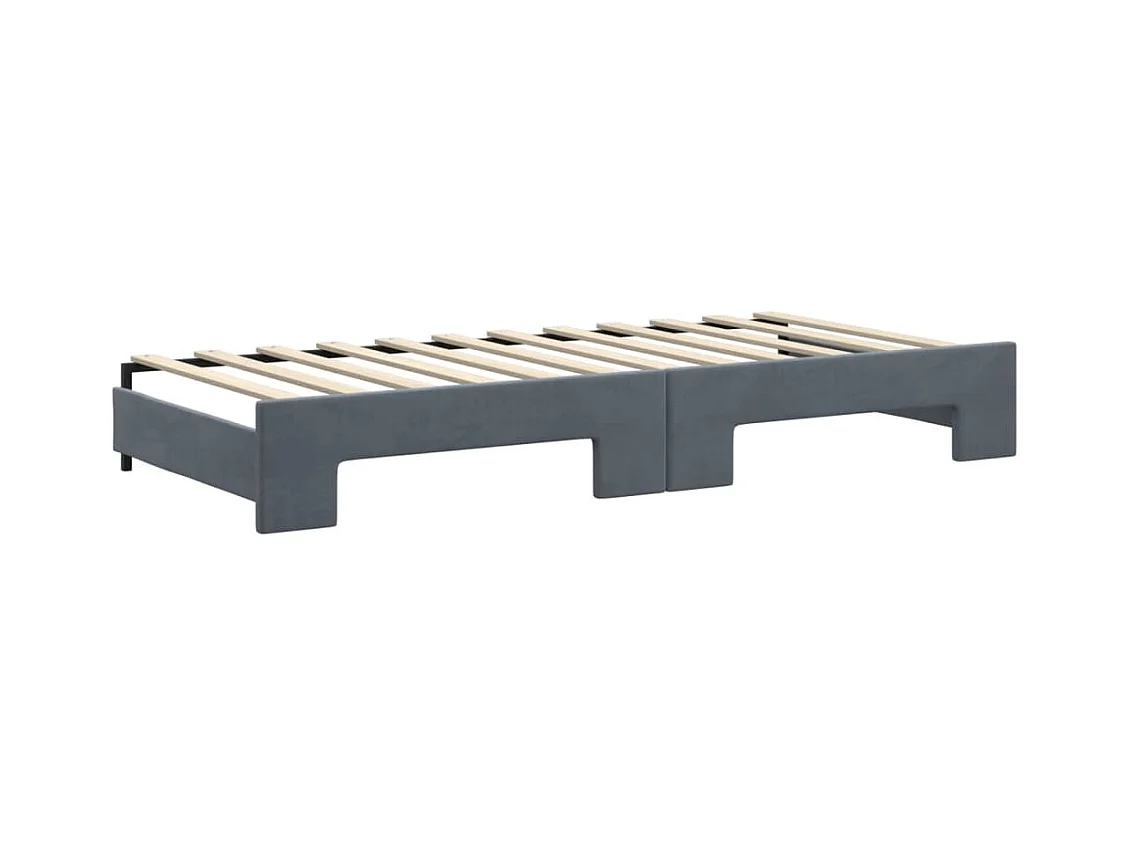 Lit de jour avec gigogne et matelas gris foncé 90x200cm velours