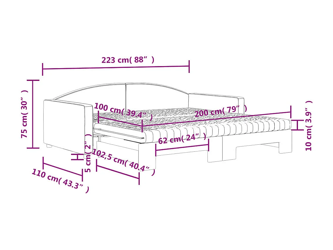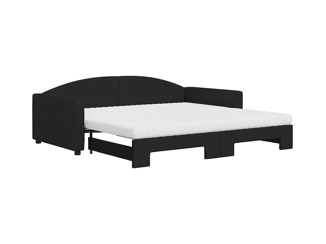 Lit de jour avec gigogne et matelas noir 100x200 cm tissu