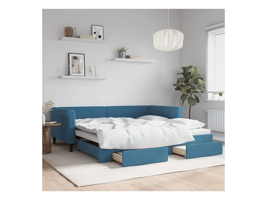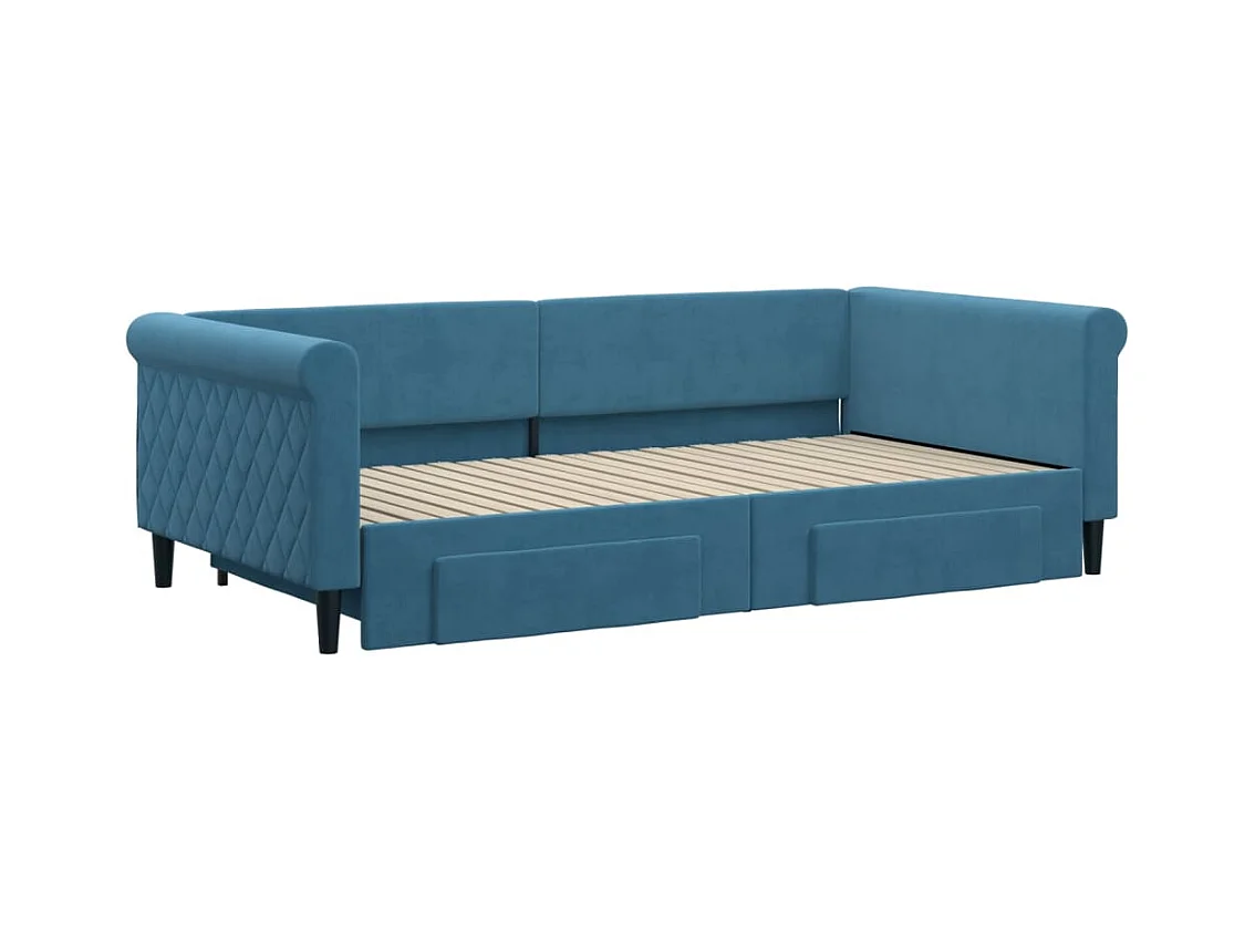 Lit de jour avec gigogne et tiroirs bleu 100x200 cm velours