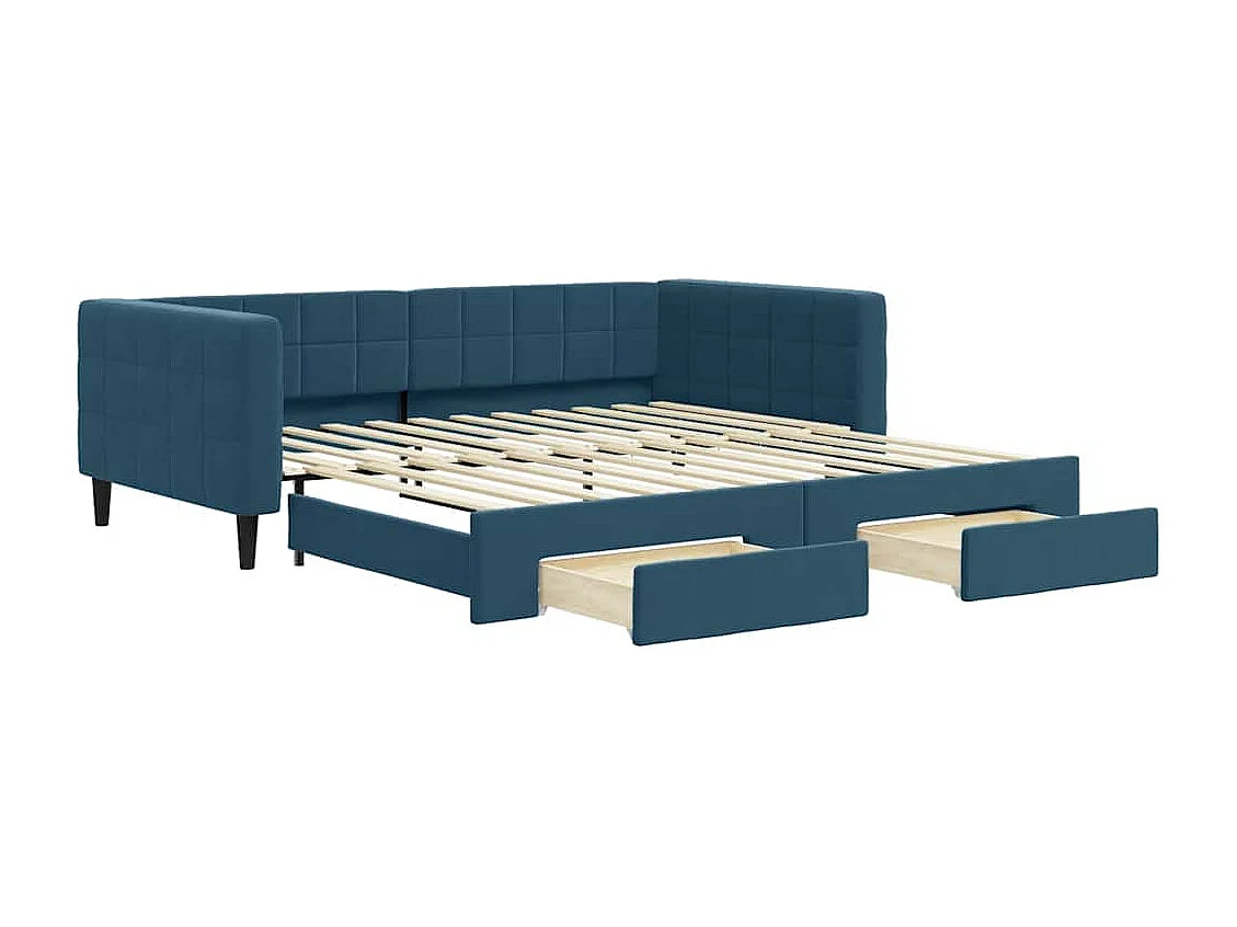 Lit de jour avec gigogne et tiroirs sans matelas bleu 100x200cm