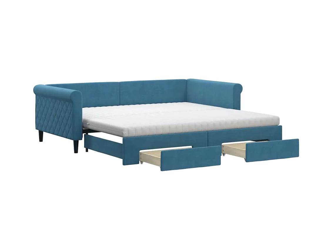 Lit de jour avec gigogne et tiroirs bleu 100x200 cm velours