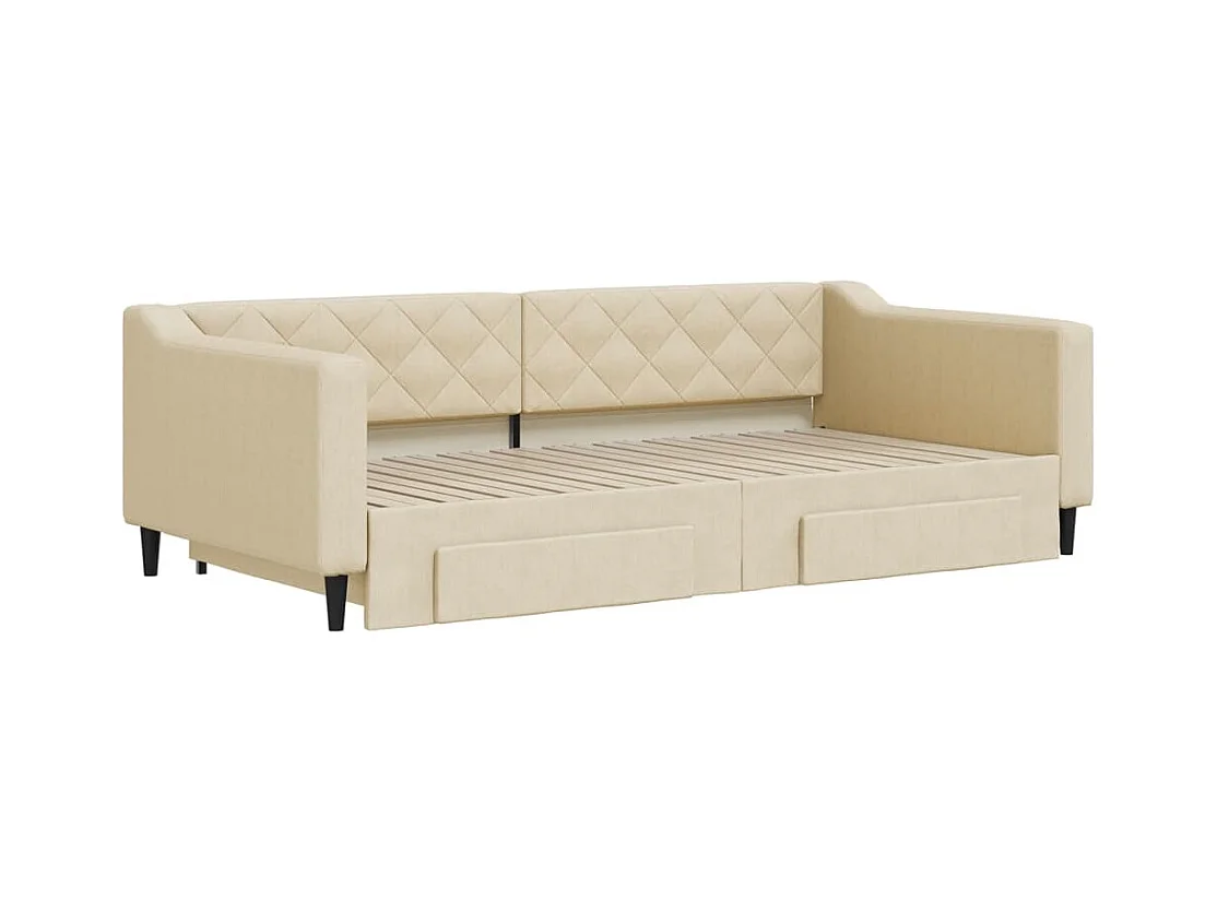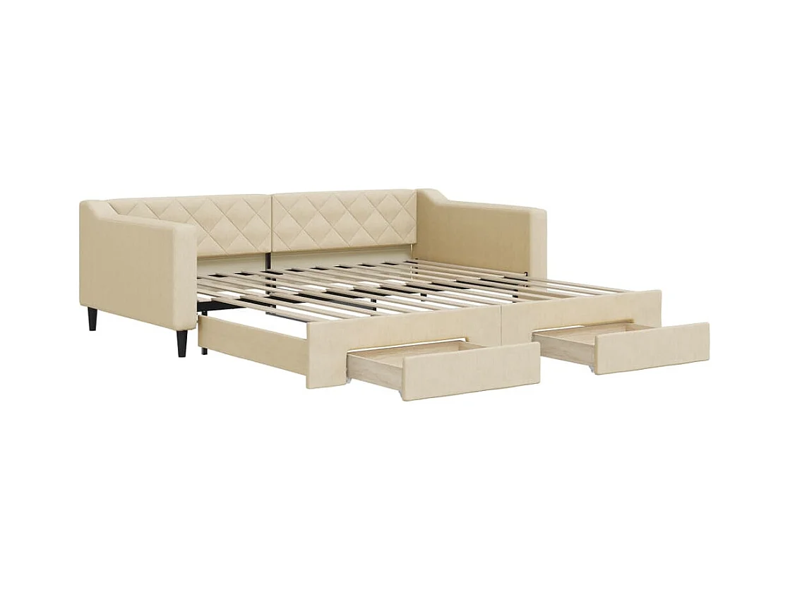 Lit de jour avec gigogne et tiroirs crème 100x200 cm tissu