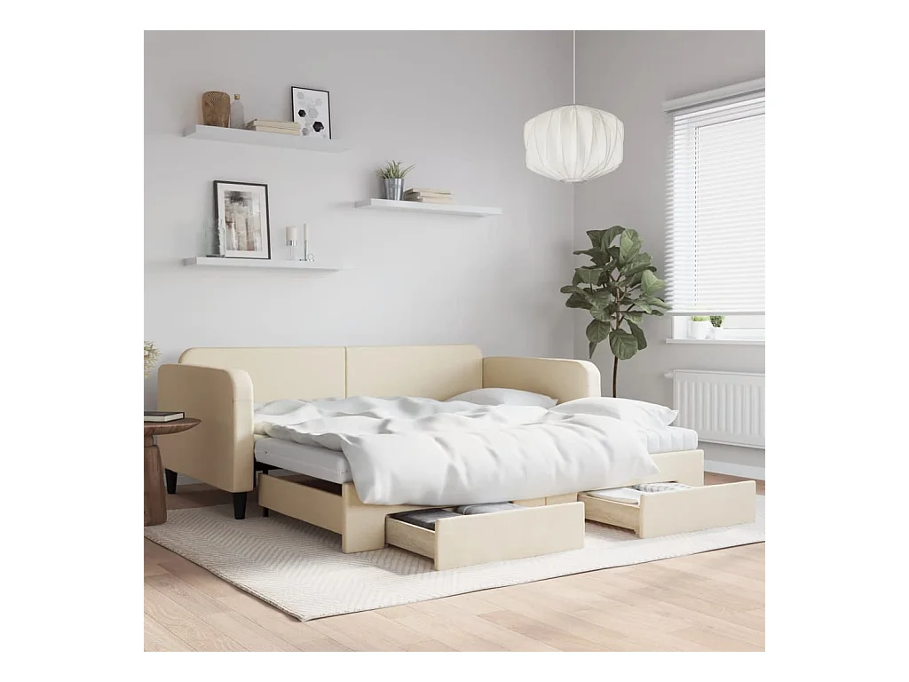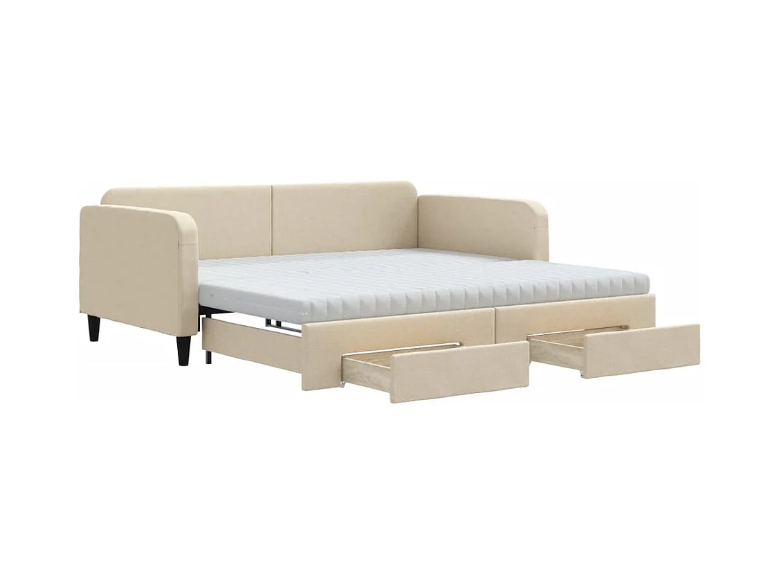 Lit de jour avec gigogne et tiroirs crème 100x200 cm tissu