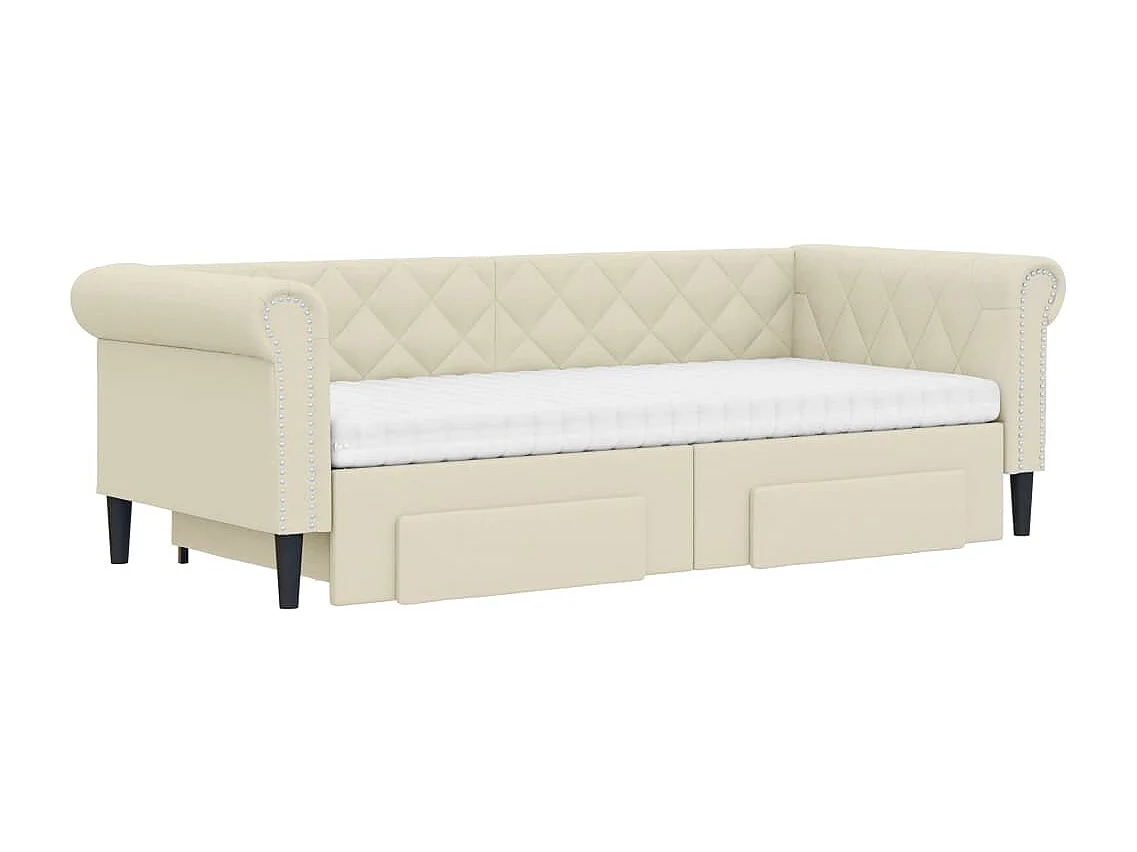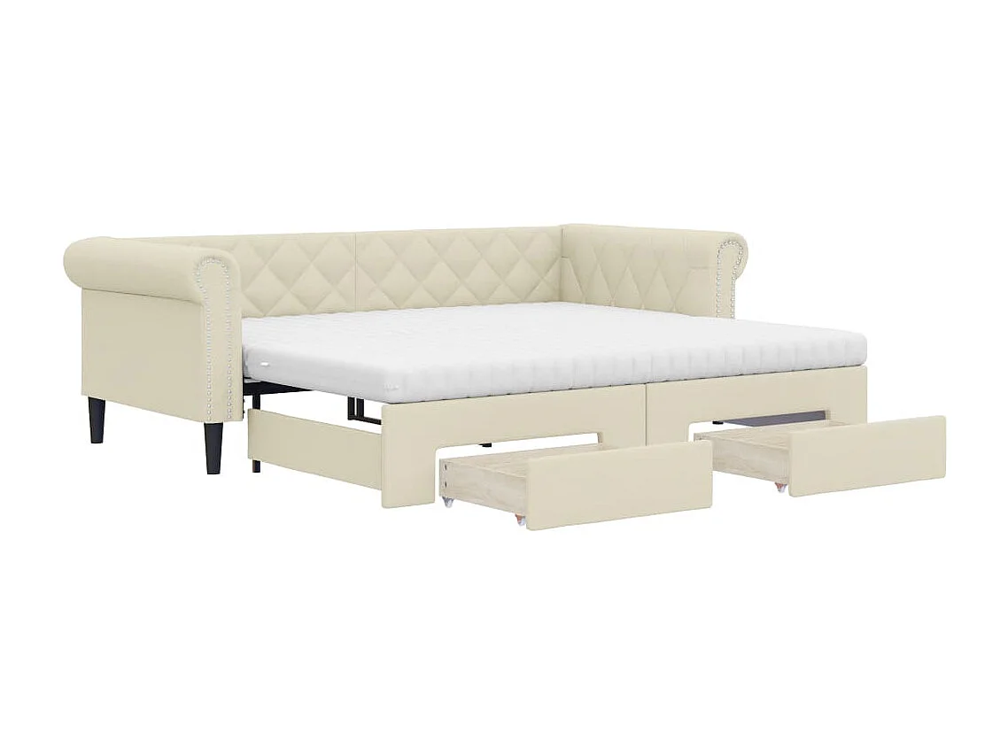 Slaapbank met onderschuifbed en lades 90x200 cm kunstleer crème