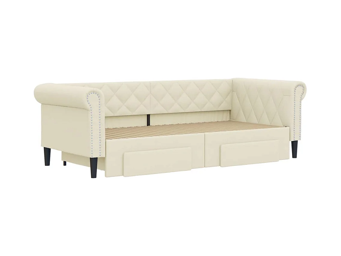 Slaapbank met onderschuifbed en lades 90x200 cm kunstleer crème