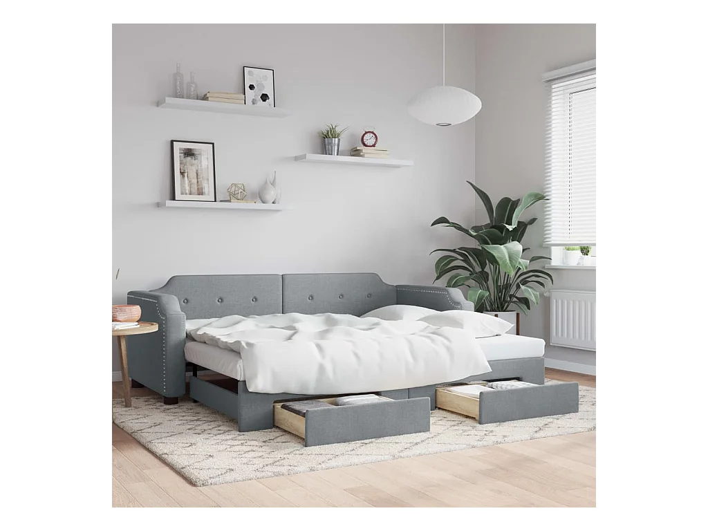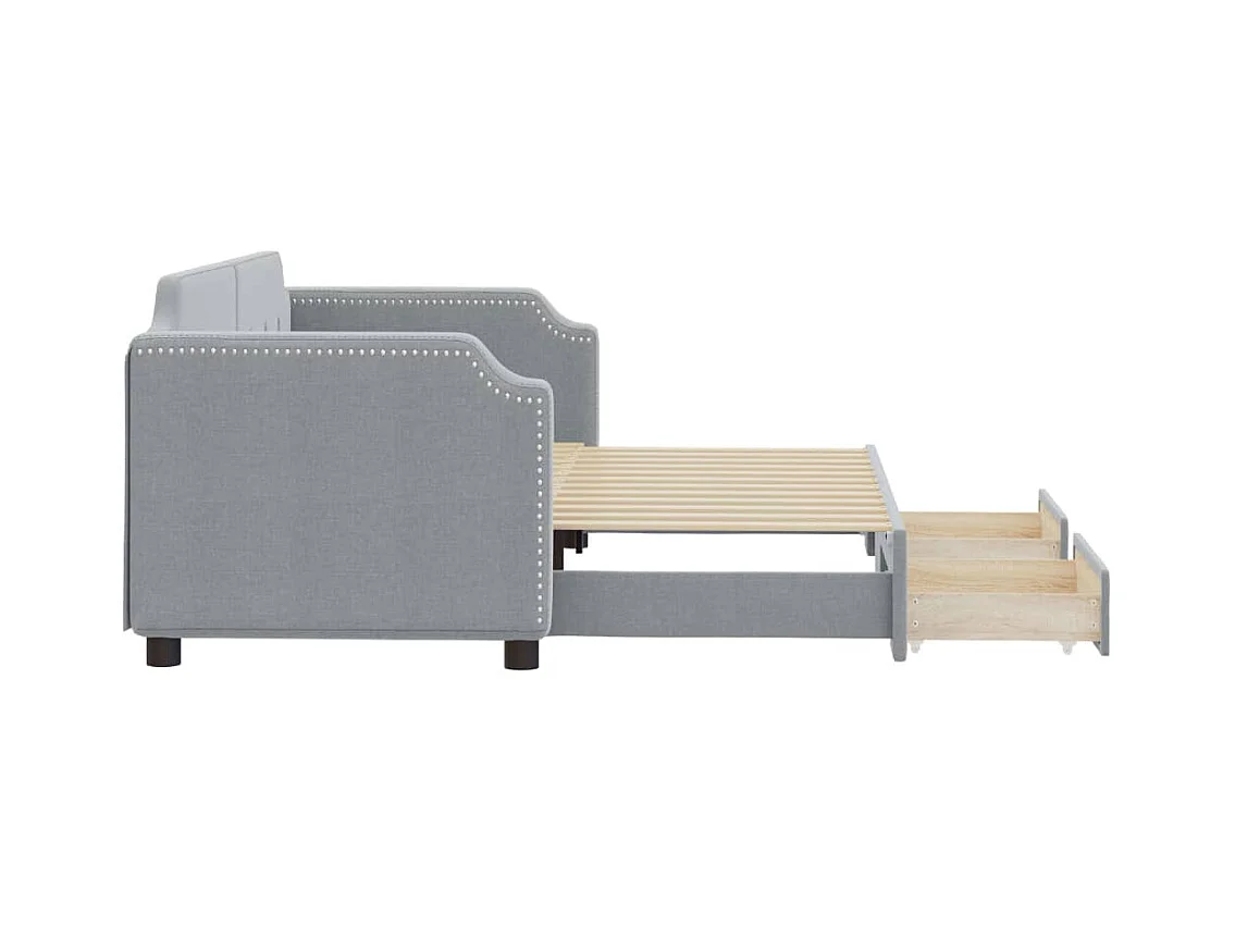 Lit de jour avec gigogne et tiroirs gris clair 80x200 cm tissu