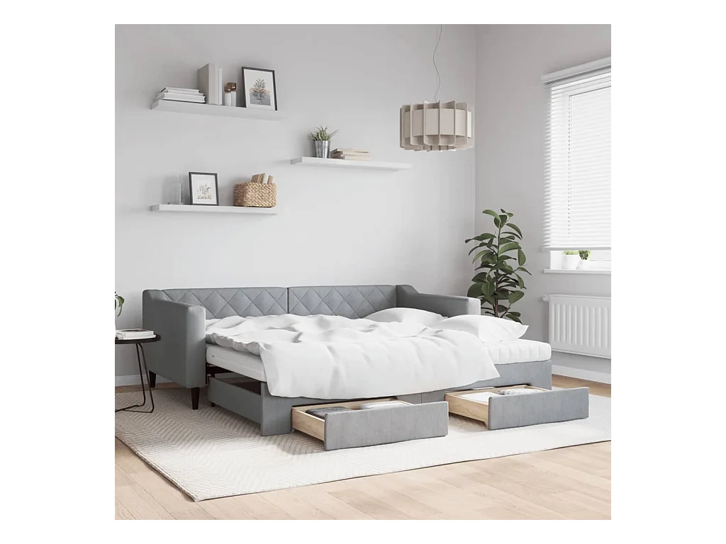 Slaapbank met onderschuifbed en lades 90x190 cm stof lichtgrijs