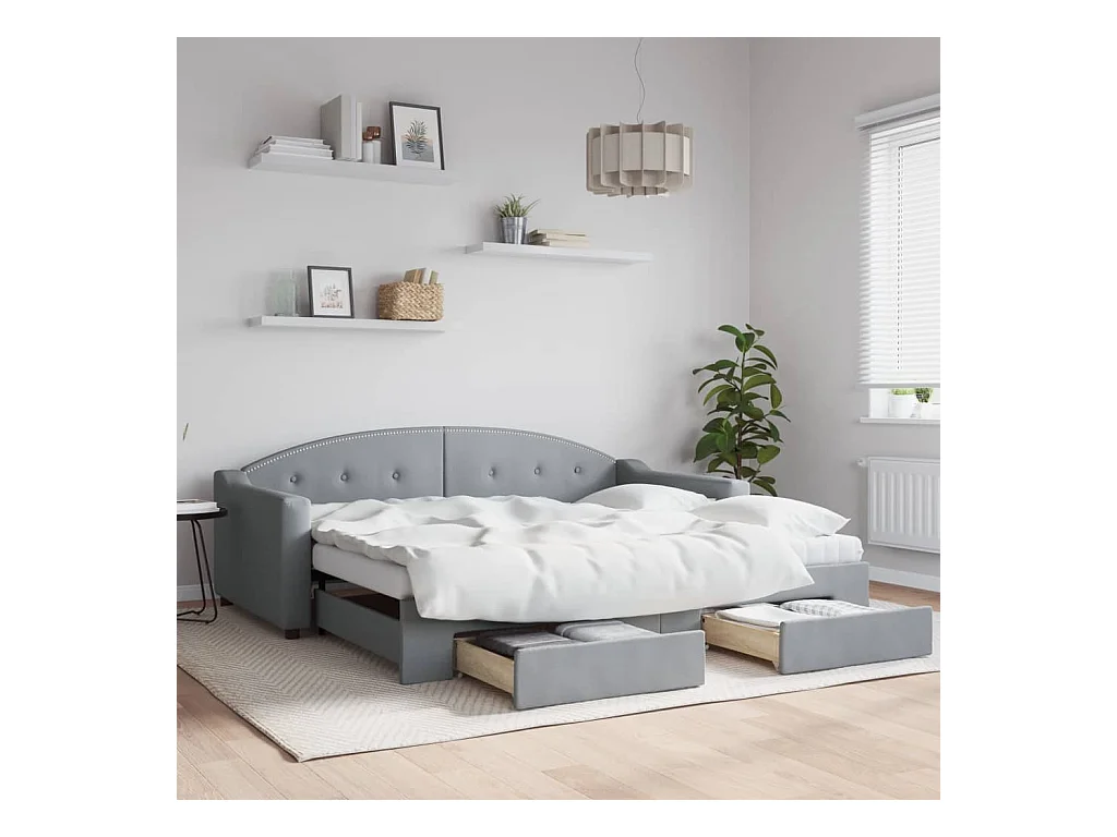 Lit de jour avec gigogne et tiroirs gris clair 90x190 cm tissu