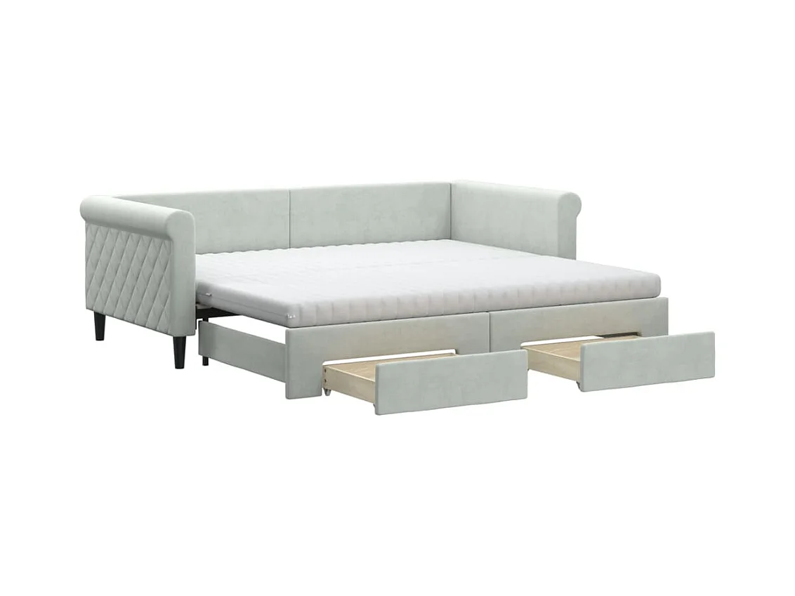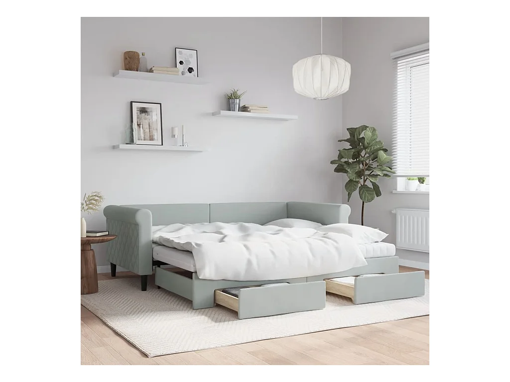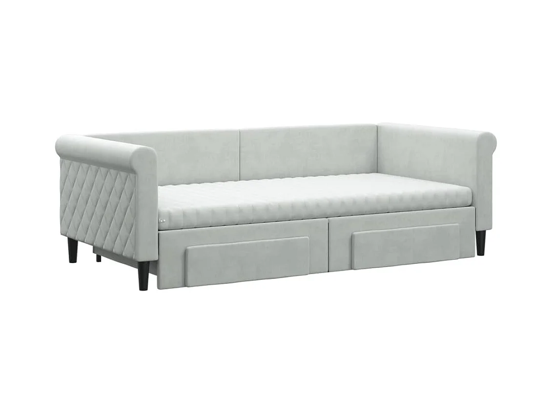 Lit de jour avec gigogne et tiroirs gris clair 90x190cm velours