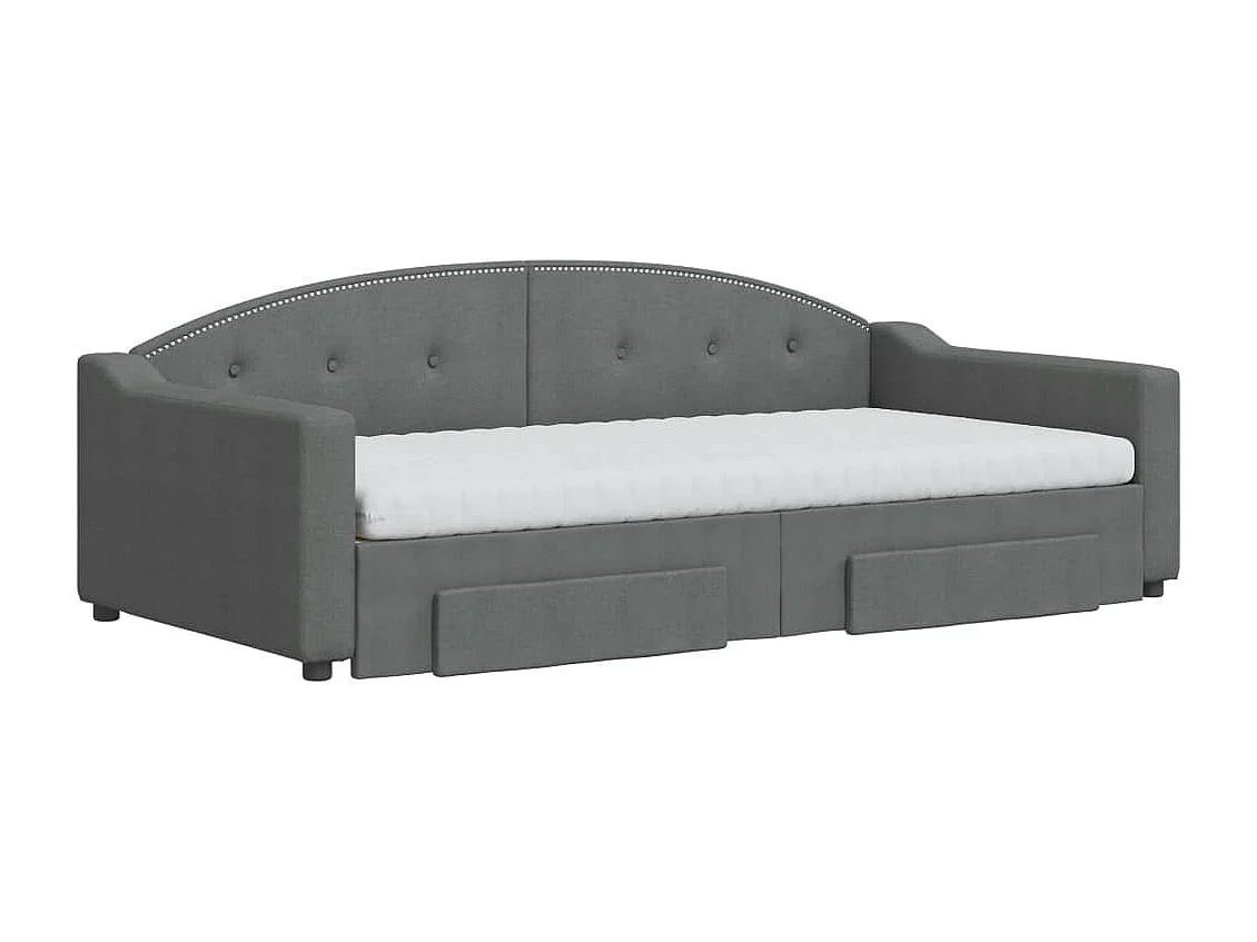 Lit de jour avec gigogne et tiroirs gris foncé 100x200 cm tissu